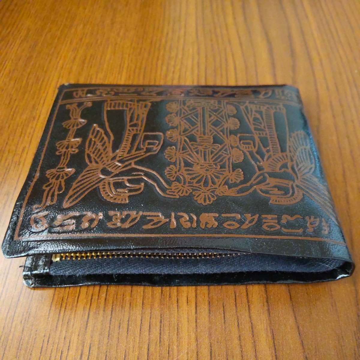 文具店在庫品☆君が代 ファスナー付 本革折財布 (b)☆