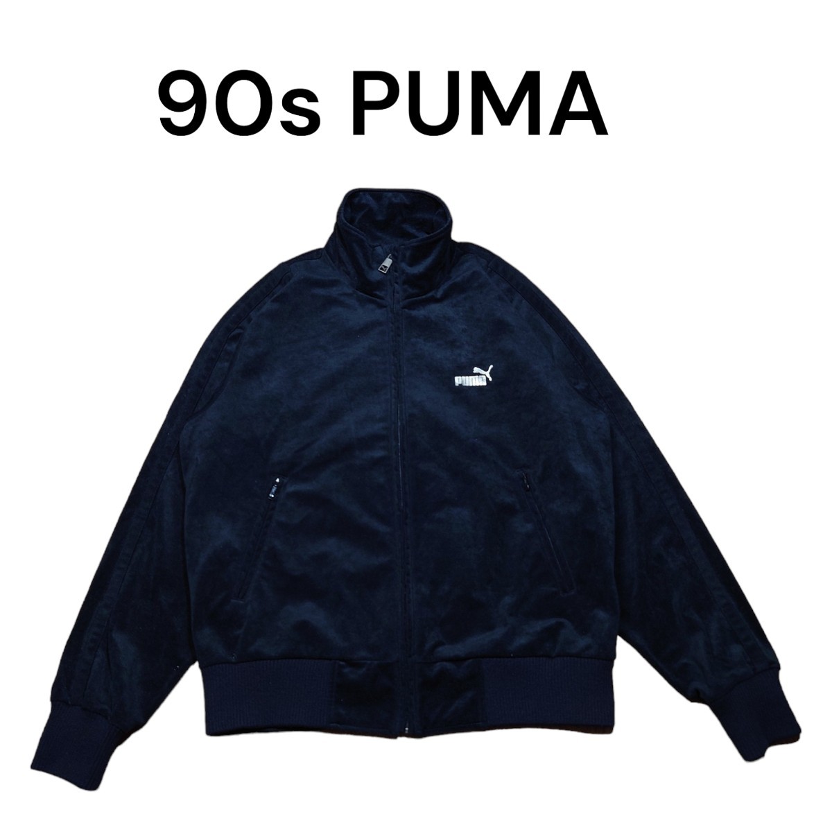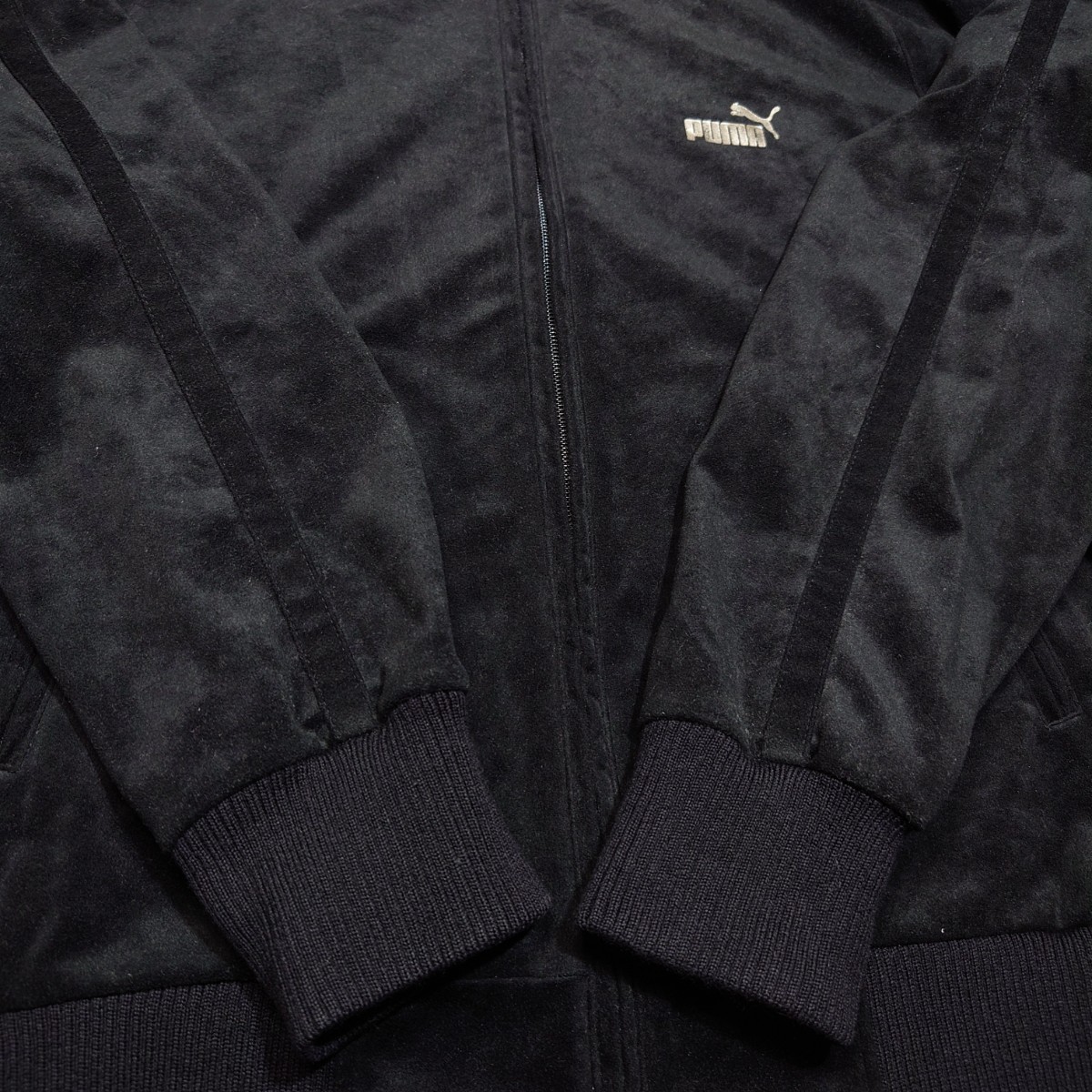 90s PUMA サイドラインベロアトラックジャケット 古着 プーマ ブラック トラックトップ