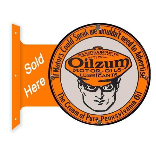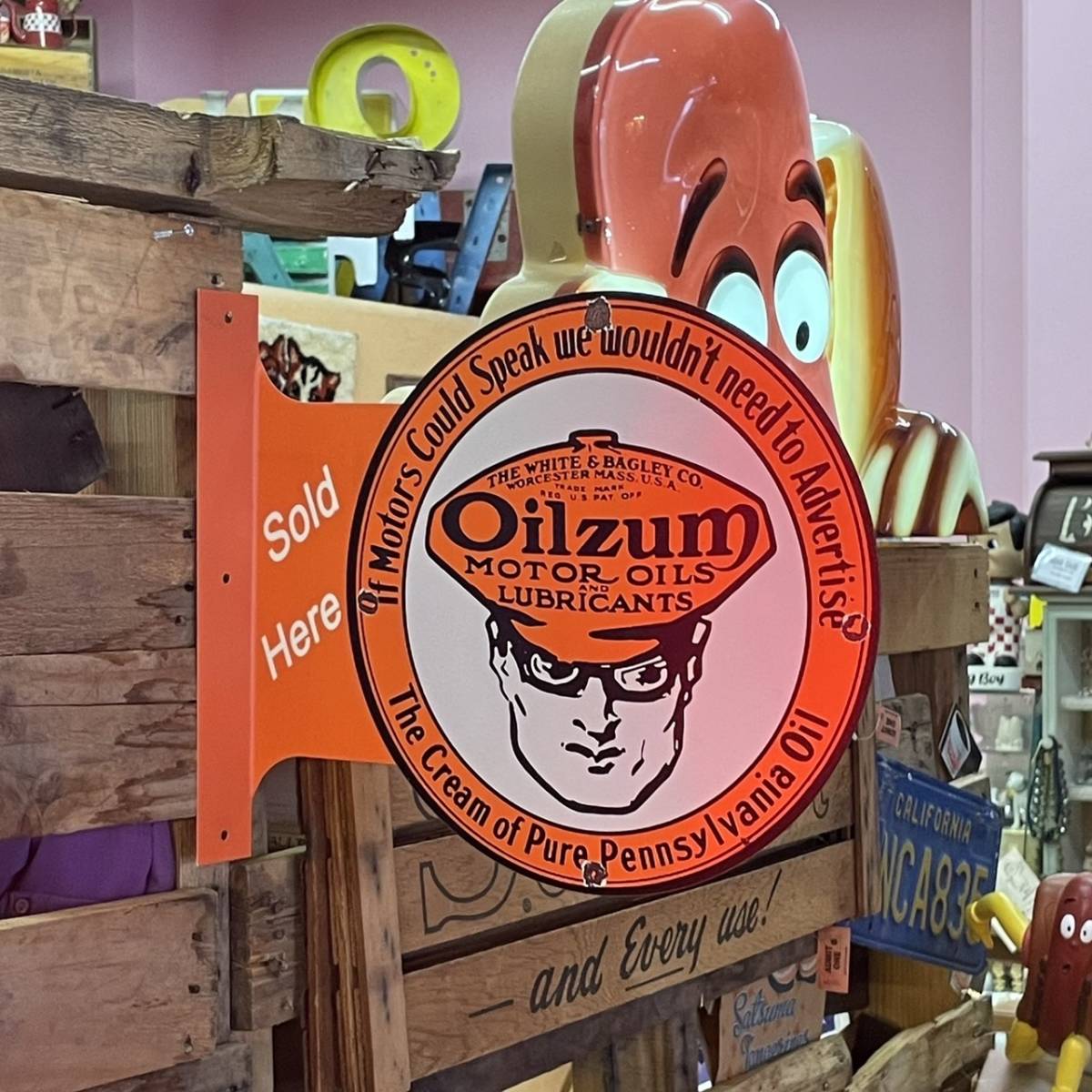 OILZUM ラウンド フランジ サイン 看板 メタル ブリキ 垂直 壁面 店舗 アドバタイジング オイルザム