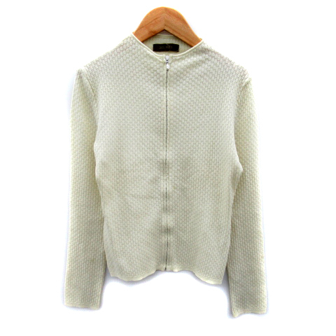 デプレ DES PRES トゥモローランド ニットカーディガン ミドル丈 クルーネック ジップアップ チェック柄 アイボリー /SY9 ■MO レディース