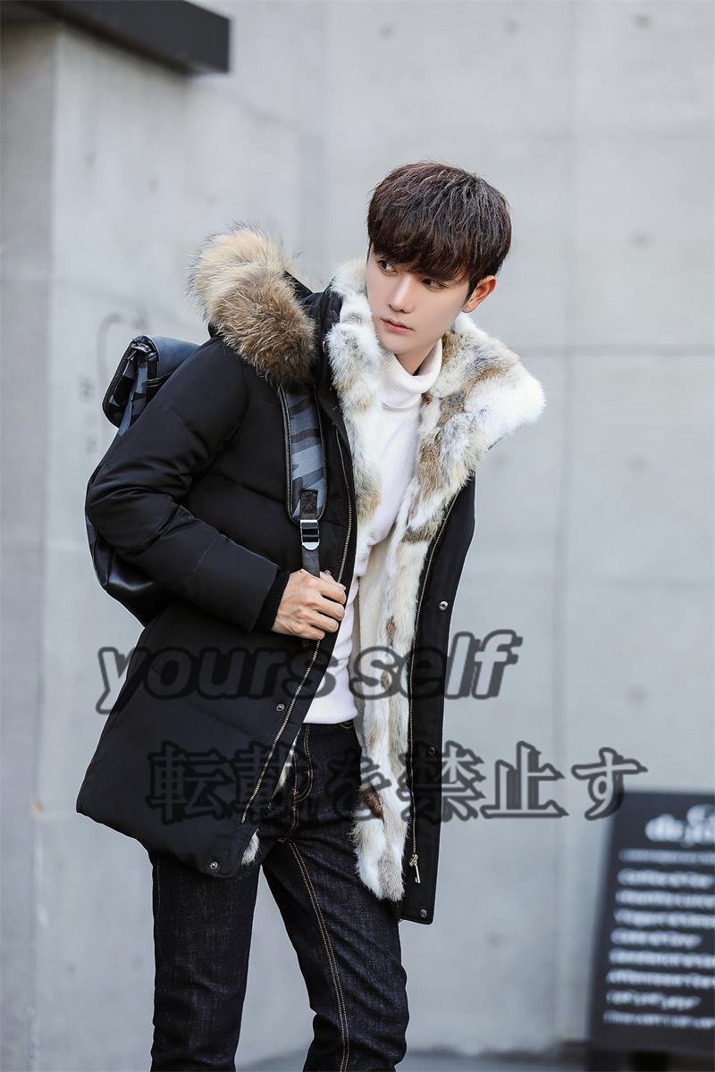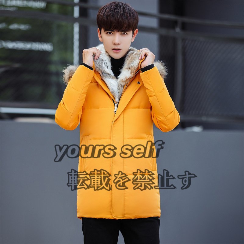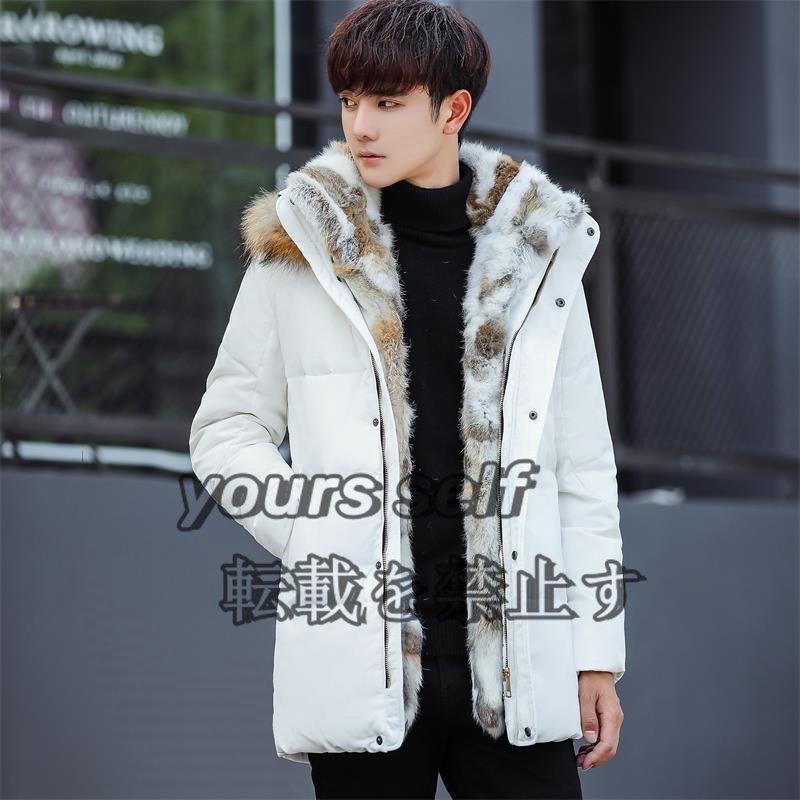 新品■ダウンジャケット ダウンコート厚手 モッズコート リアルファー アンゴラ兎毛 カップル ロングコート フード取り外す ホワイト 2XL