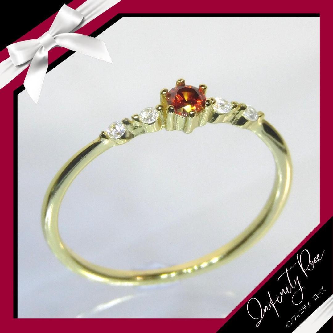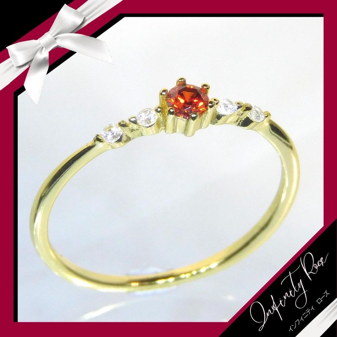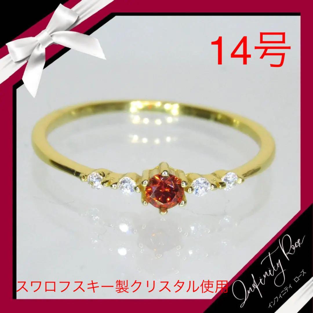 (1187)14号 ゴールド極極細ルビーエンゲージリング 高価爪留め指輪 スワロフスキー製クリスタル使用