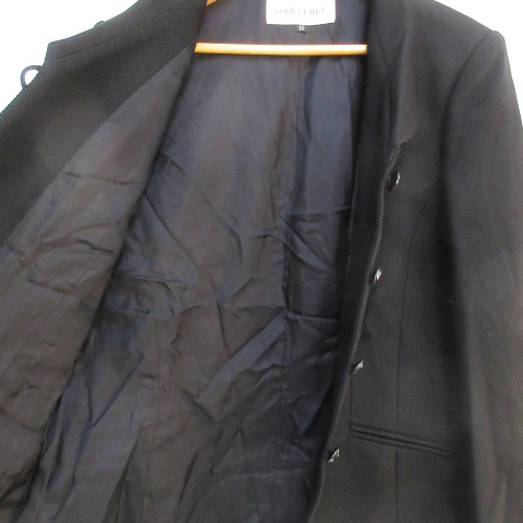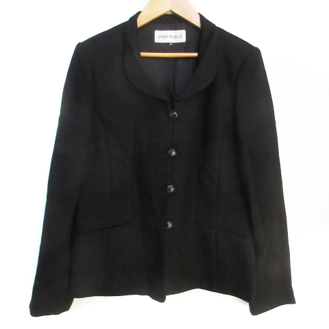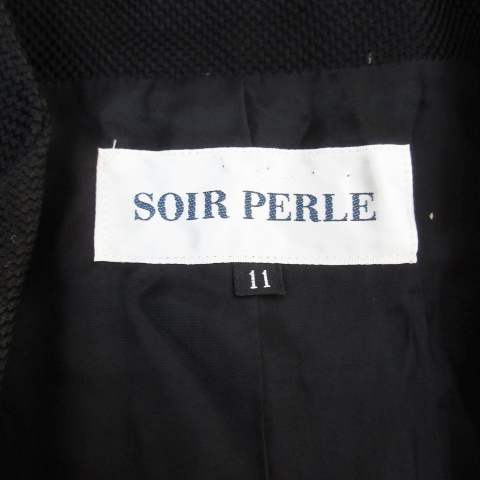 ソワール ペルル SOIR PERLE ジャケット ミドル丈 ラウンドカラー 総裏地 シングルボタン 総柄 11 黒 ブラック /FF36 レディース