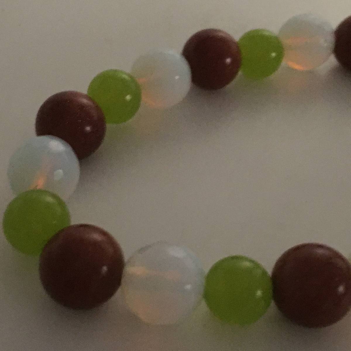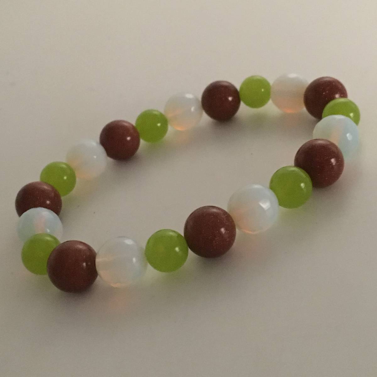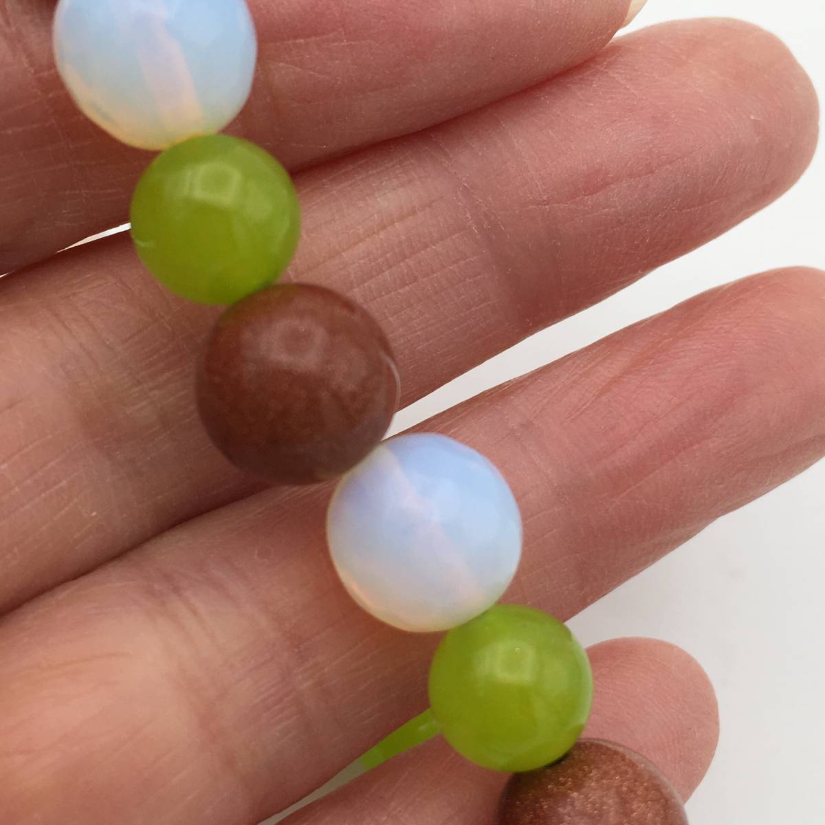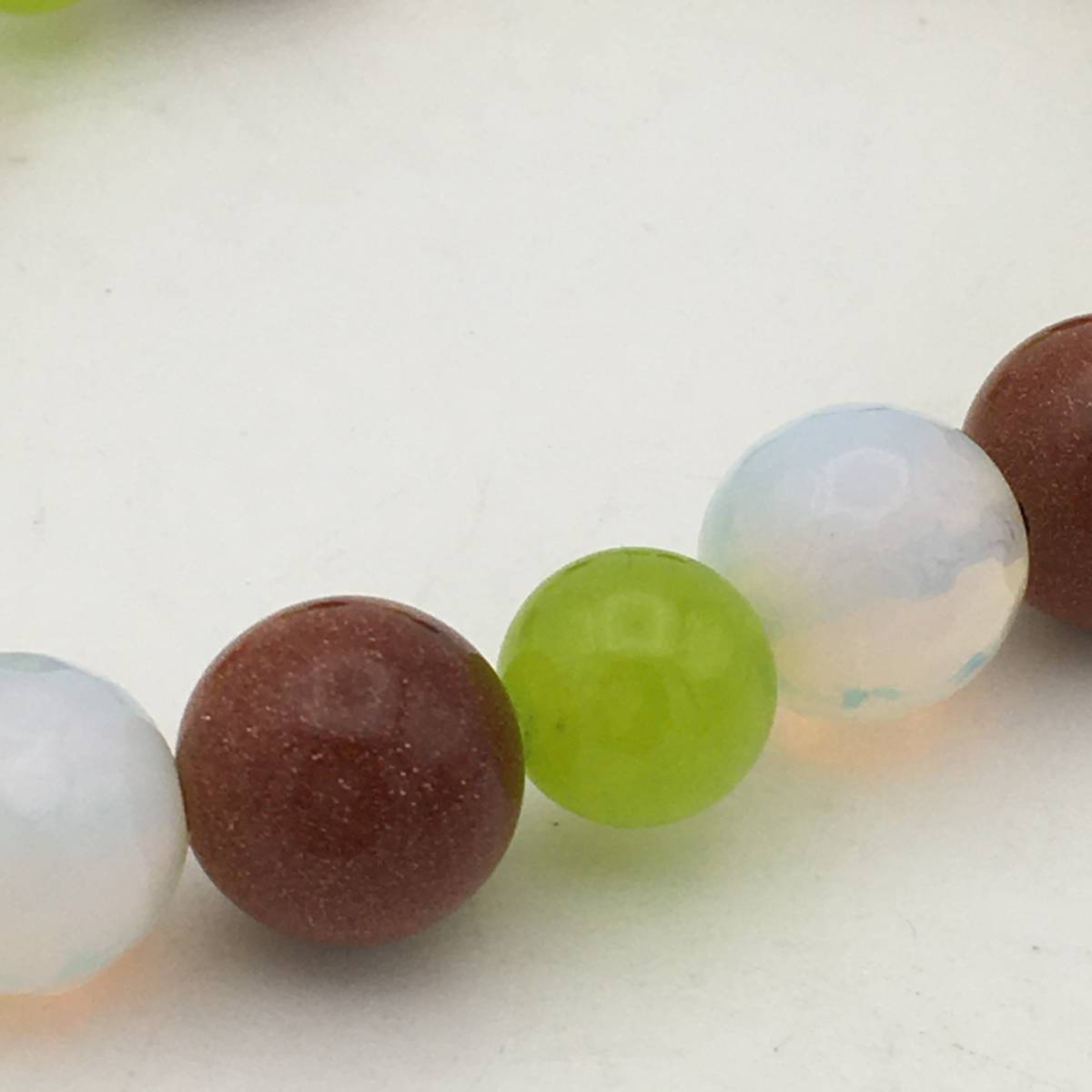 素材:ムーンストーン(10mm)、サンドストーン(10mm)、ペリドット(8mm)