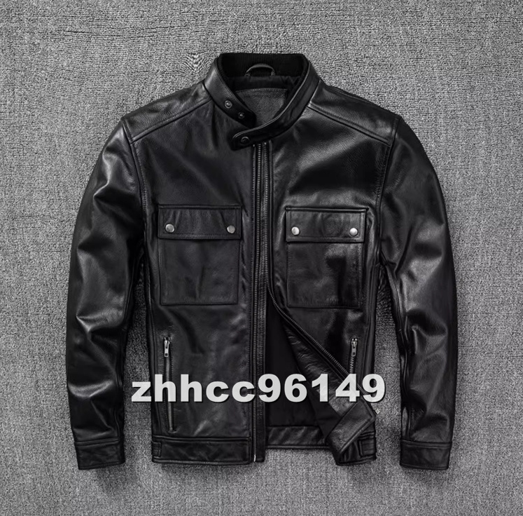 ■美品■メンズ 革ジャン 最上級 牛革 ライダース レザージャケット 本革 バイクウエア オートバイ ブルゾン S~2XL