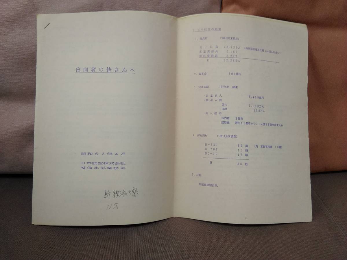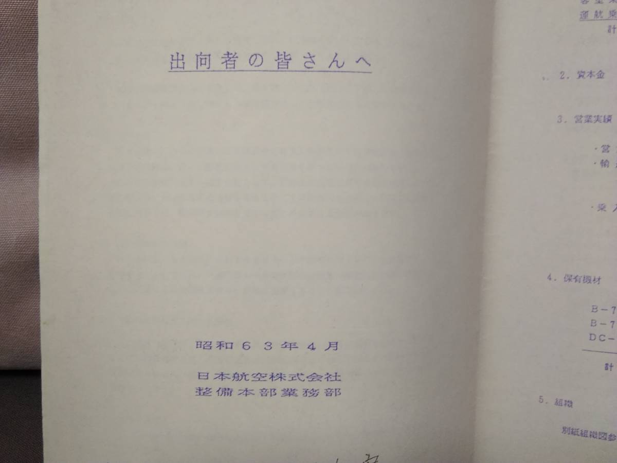 鉄道資料⑨ 出向者の皆さんへ 昭和63年4月 日本航空株式会社 JR東海 B747 ボーイング747 機体整備