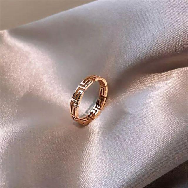 お肌馴染みの良いピンクゴールドでオシャレなデザインのリングとなっております^ ^