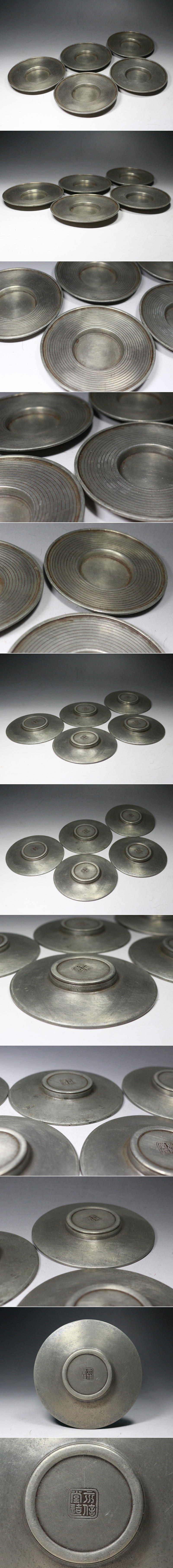 | ■古錫・圓式・円式・茶托・5客・在印在銘・煎茶道具・茶道具・重さ447㌘・f847 | ||||||||||||||||||||