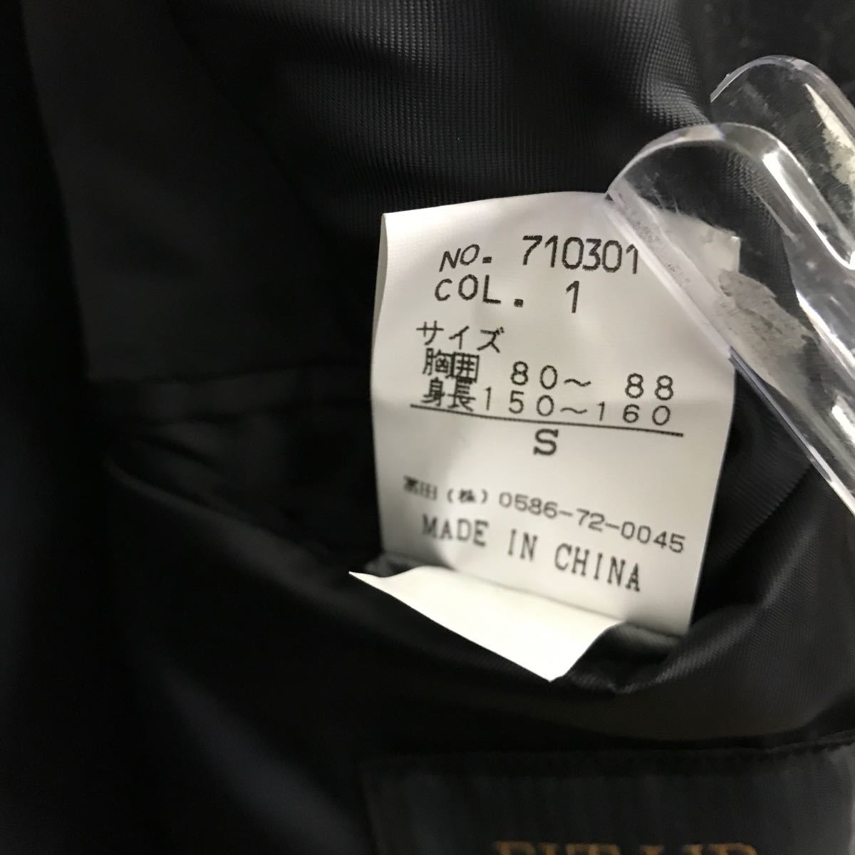 表記サイズはS。実測値は平置きで肩幅49cm、袖丈59cm、身幅57cm、着丈103cm。