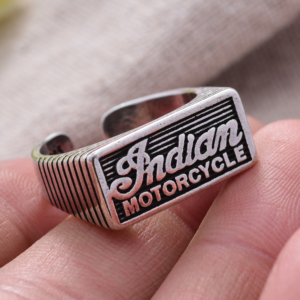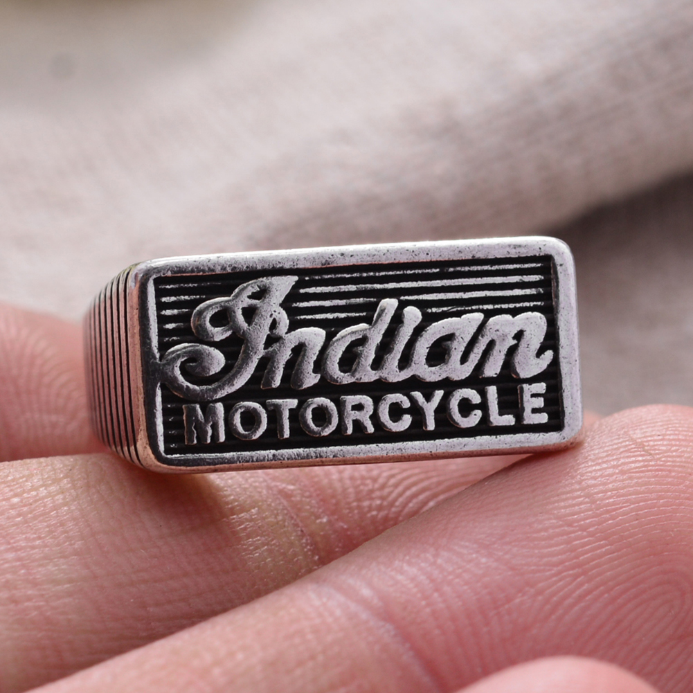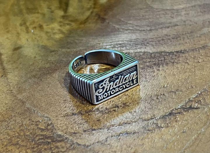 アメリカ、インディアンモーターサイクルのロゴをあしらったリングです。