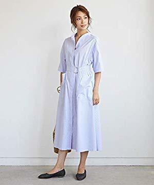 《未使用》 [ティティベイト] Aライン シャツ ワンピース ロングスカート ベルト付き AVXN0461 ストライプ Mサイズ 《アウトレット》KN2
