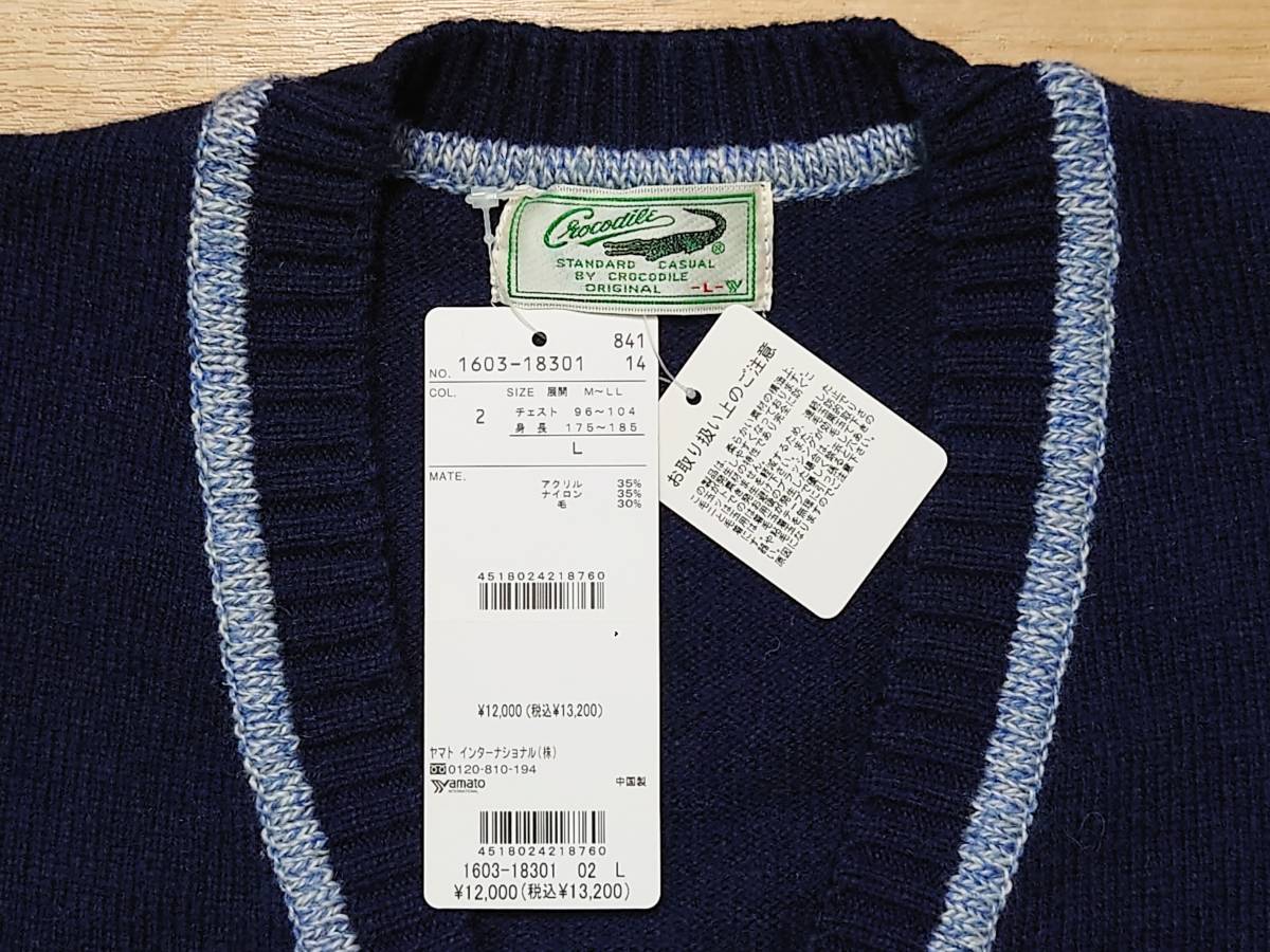 Crocodile ヤマトインターナショナル㈱ブランド ◆ クロコダイル カーディガン セーター◆本体価格¥12,000円品◆サイズ L ◆ タグ付新品