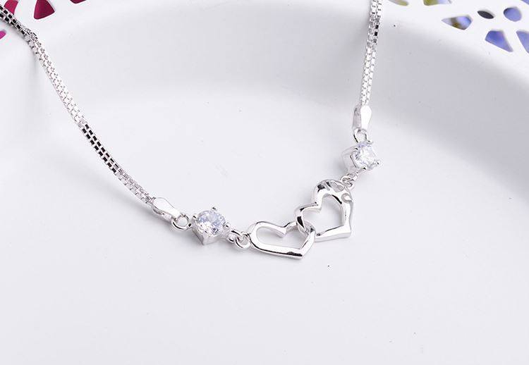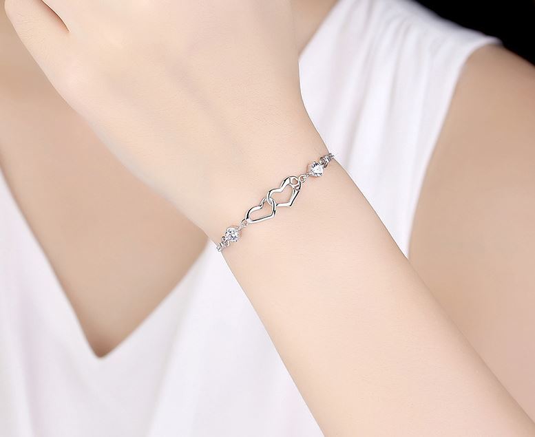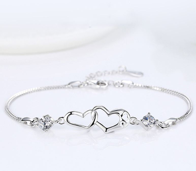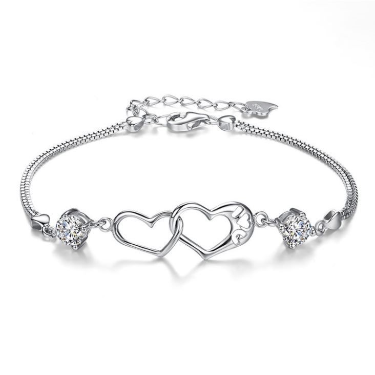 | 【新品】☆☆《選べるカラー》ブレスレット キュート ダブル ハート シンプルデザイン ジルコン シルバーメッキ 銅☆☆ | |||