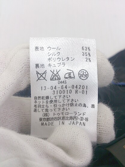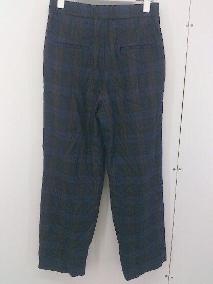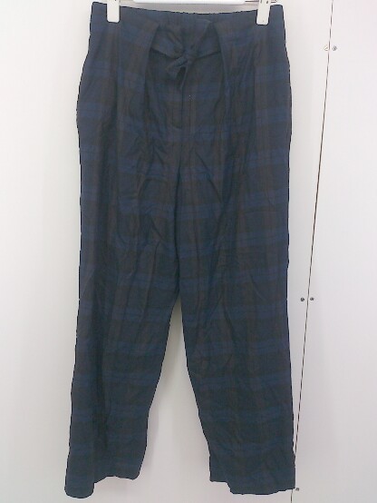 ◇ TOMORROWLAND ウエストゴム リボン チェック ストレッチ パンツ サイズ34 ネイビー ブラウン レディース