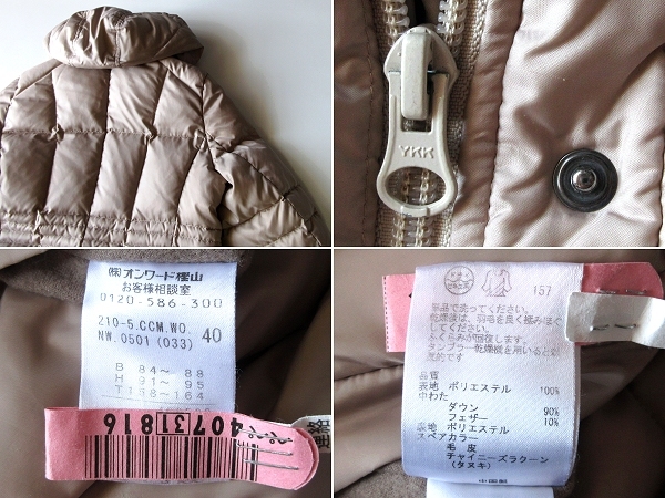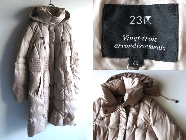 23区 フード取外し可 2WAY 軽量 ダウンコート ロングダウンジャケット 40 ベージュ オンワード樫山
