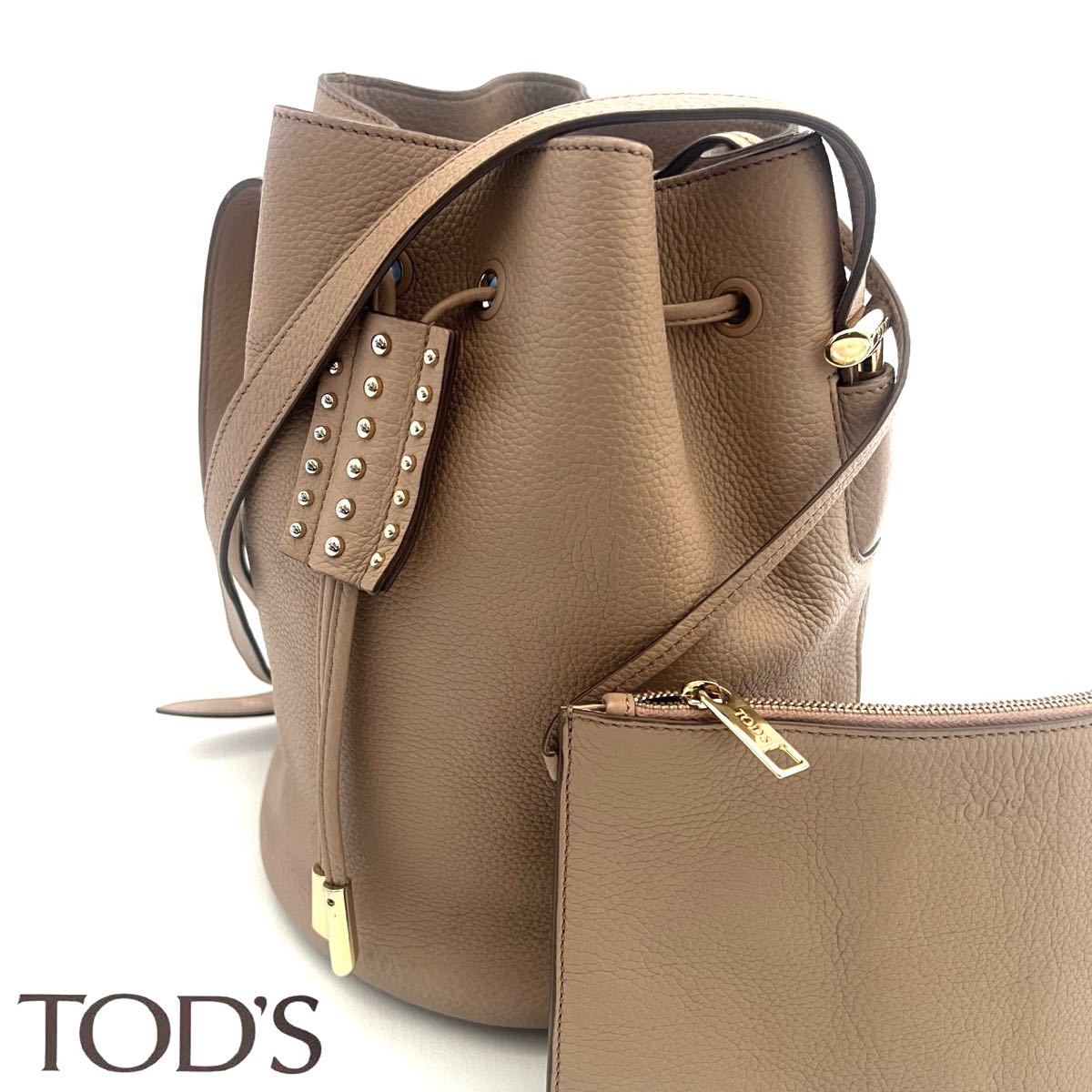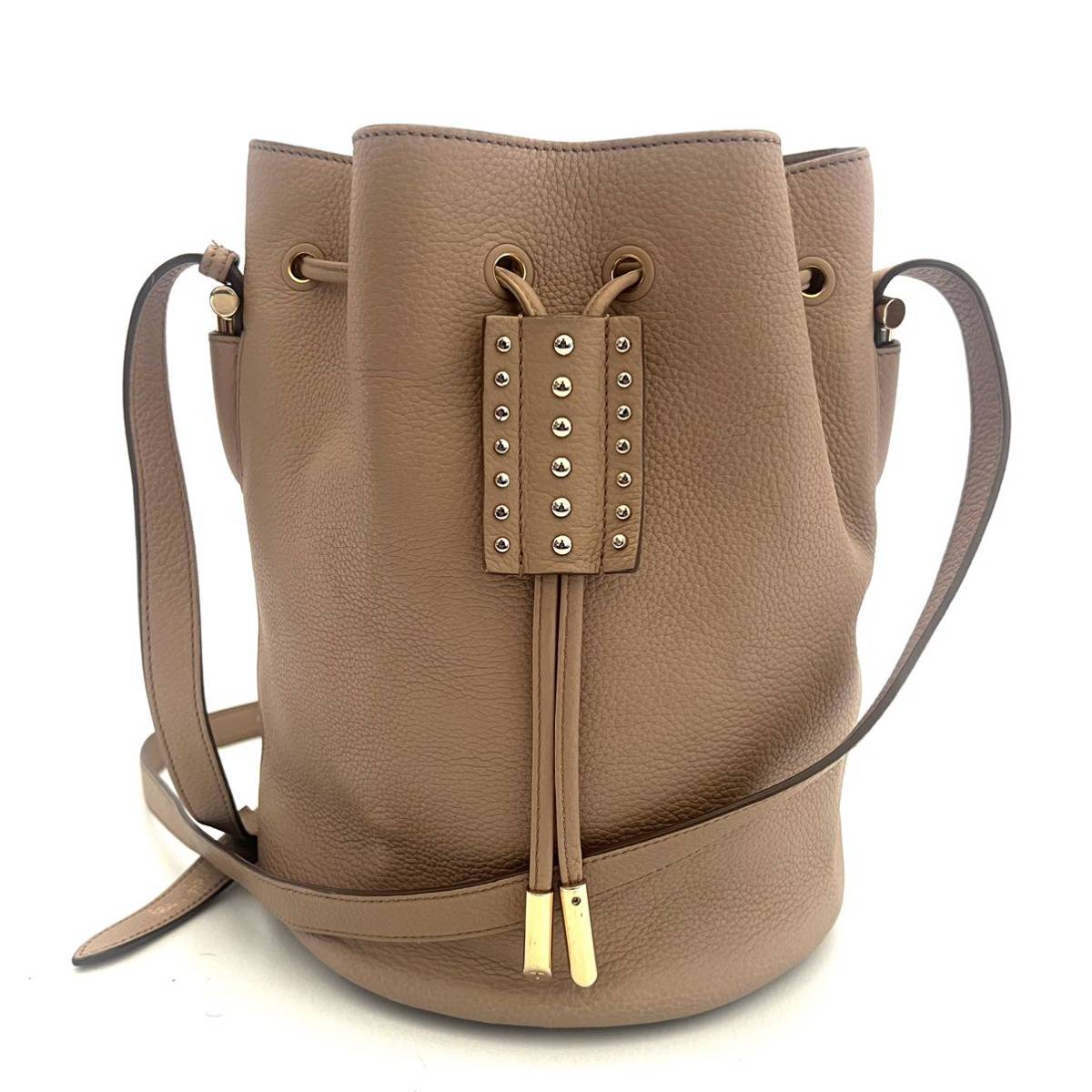 《デザイン》スタッズ 巾着 ショルダーバッグ 斜め掛け カバン 鞄 本革 レザー レディース ポーチ付き
