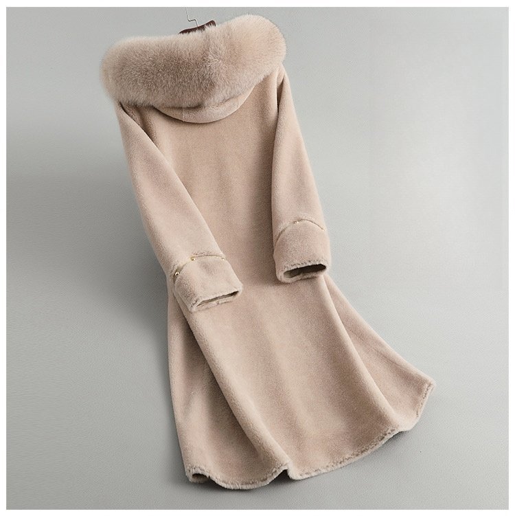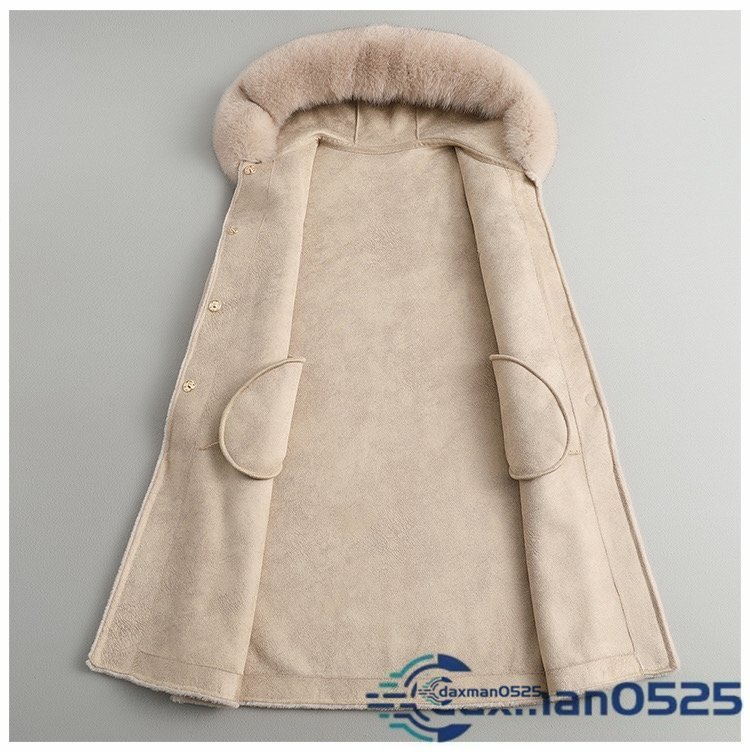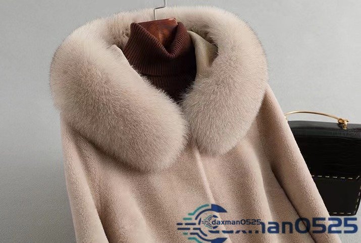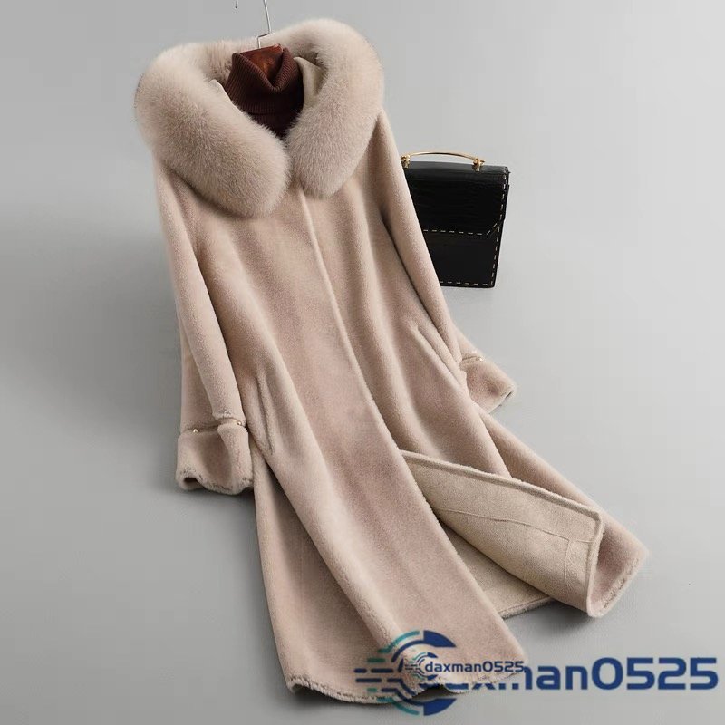 ★最高級★100%羊毛★皮毛一体★フォックスファー襟付き羊毛ロングコート ★毛皮ファー