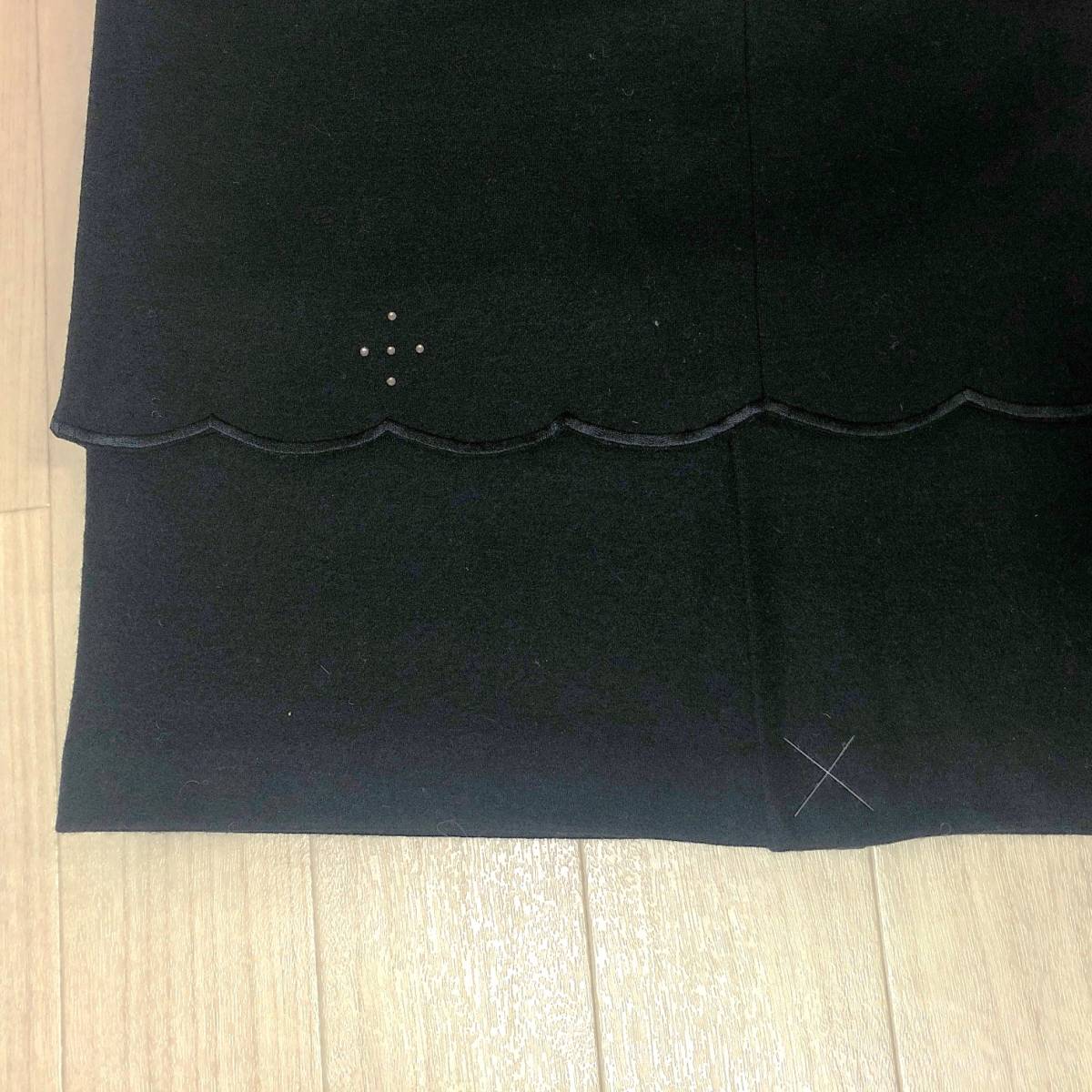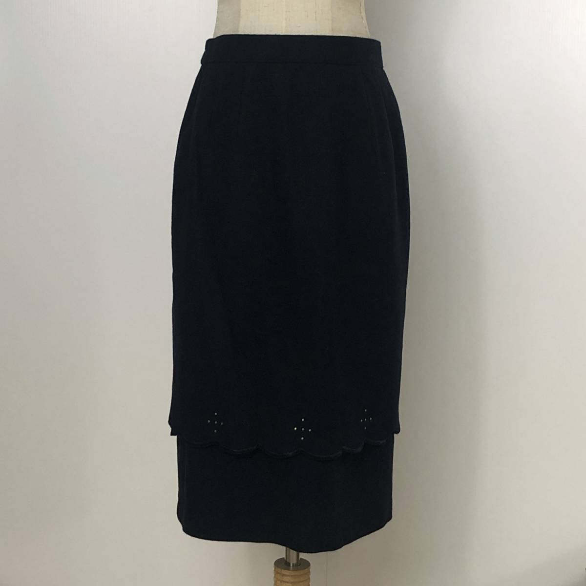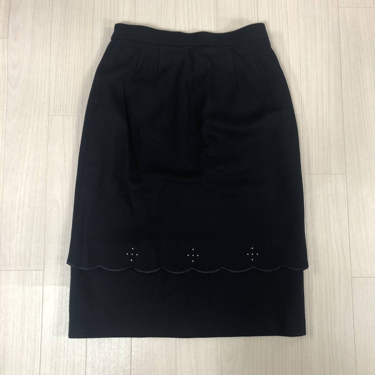 Y0375 タグ付 未使用 P.Mauriat ポールモーリア レディース ボトムス タイトスカート 膝丈 2段 ラインストーン ブラック 黒 毛100% 秋冬