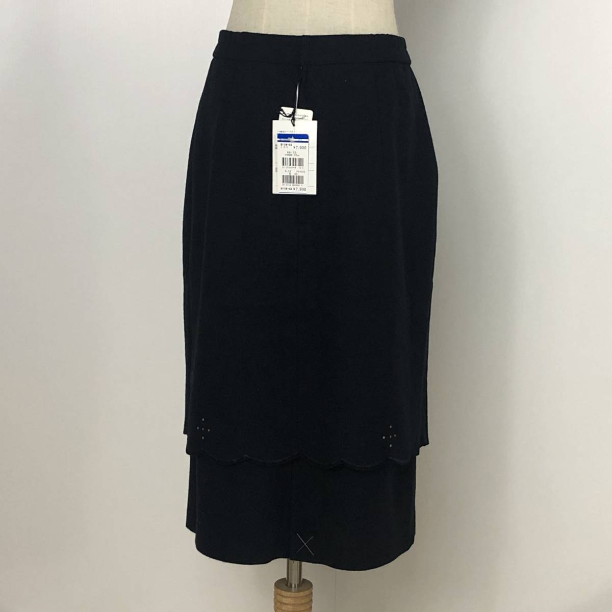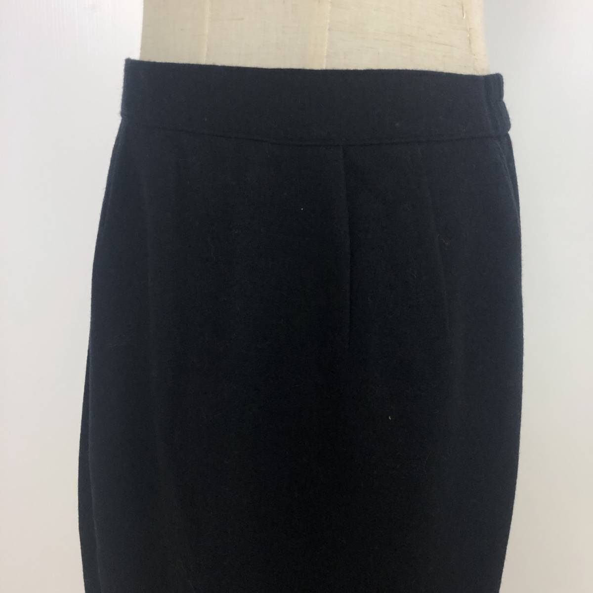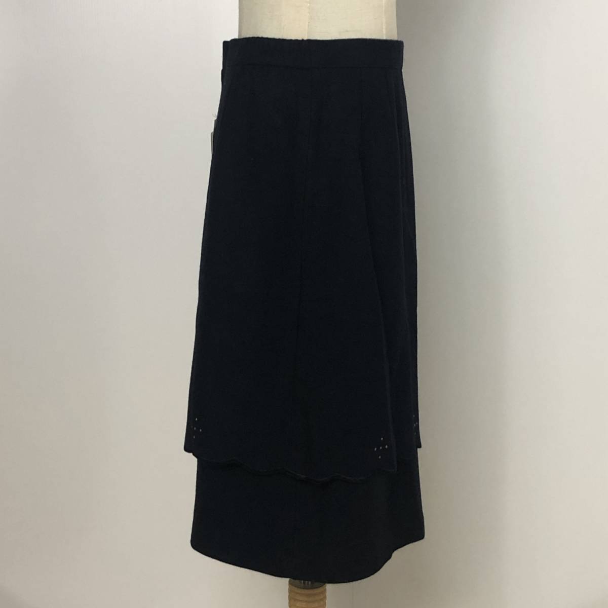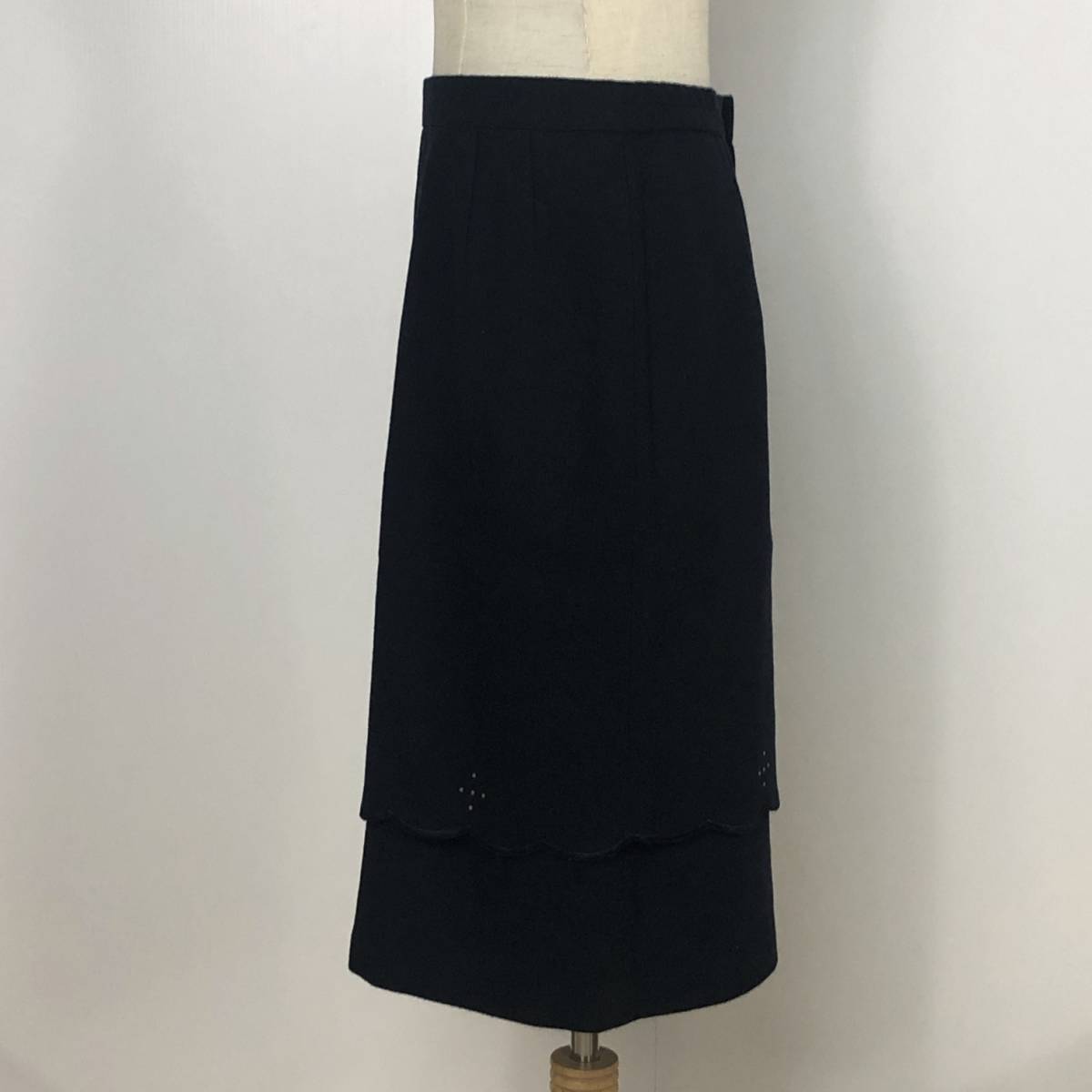 Y0375 タグ付 未使用 P.Mauriat ポールモーリア レディース ボトムス タイトスカート 膝丈 2段 ラインストーン ブラック 黒 毛100% 秋冬