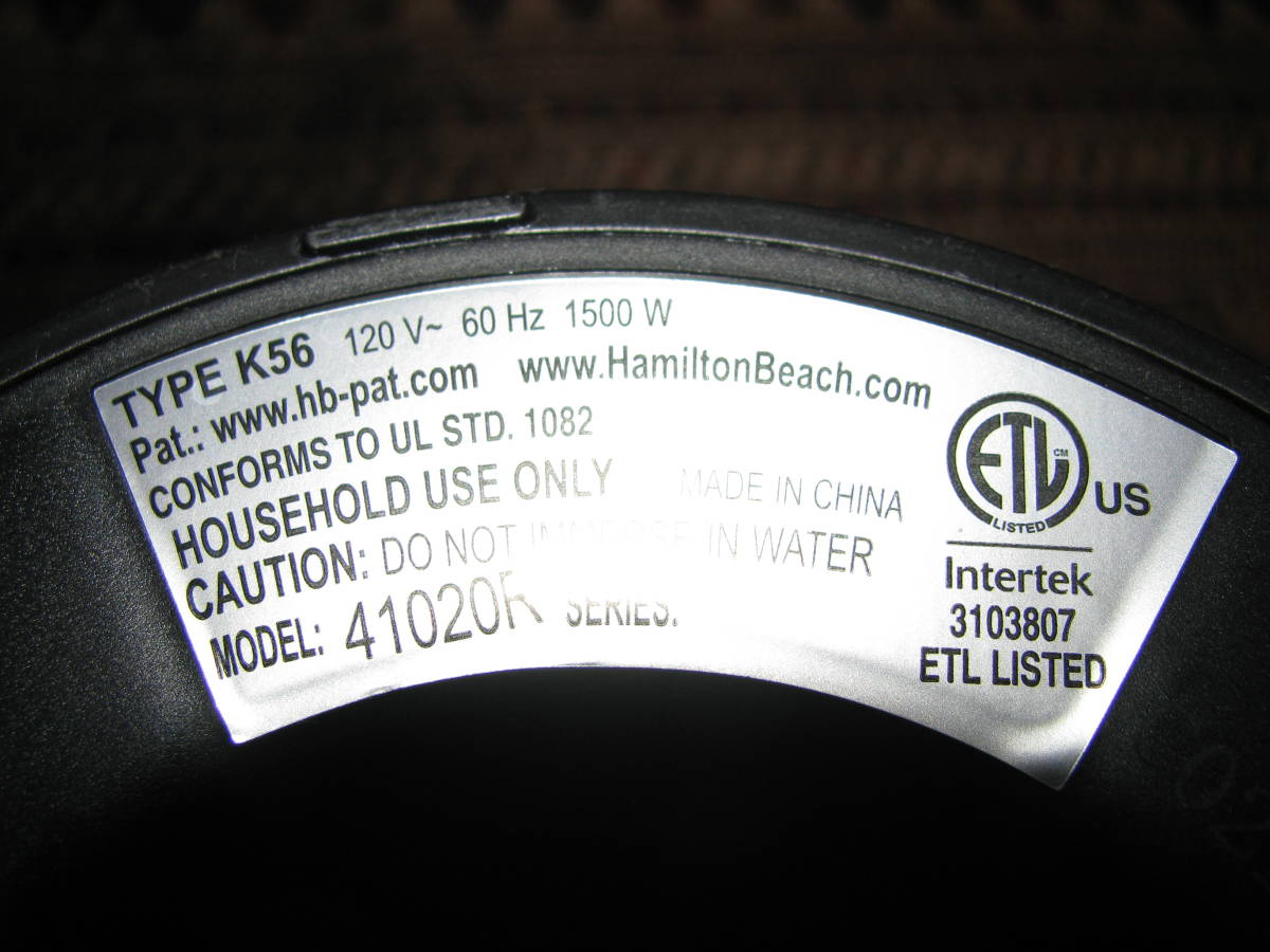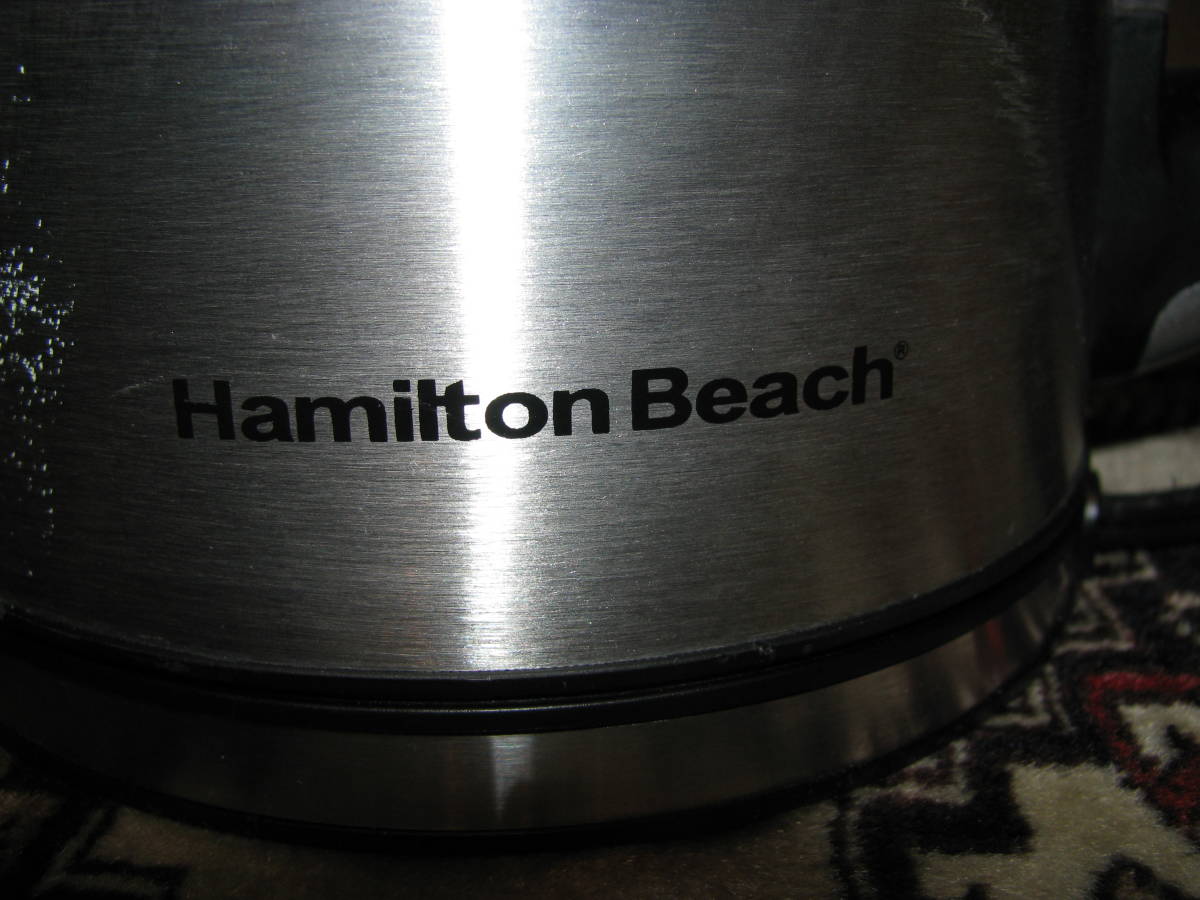 HAMILTON BEACHの電気ポット K56 41020Rです。120V仕様ですが動作確認済み、様々な温度設定の湯沸かしが可能です。キズ、汚れなどあり、温度は華氏表示、プラグ先端は左右で異なる形状です、ご了承ください。送料1200円(北海道、沖縄1600円)でお送りいたします。