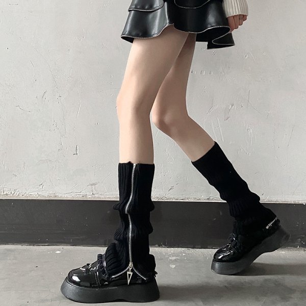 【黒 ブラック ジップ チャーム ニット レッグウォーマー】