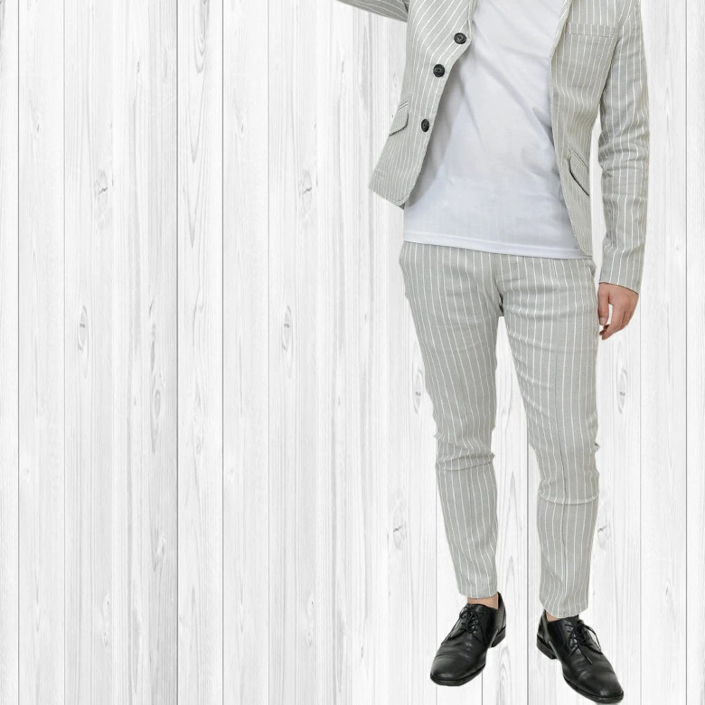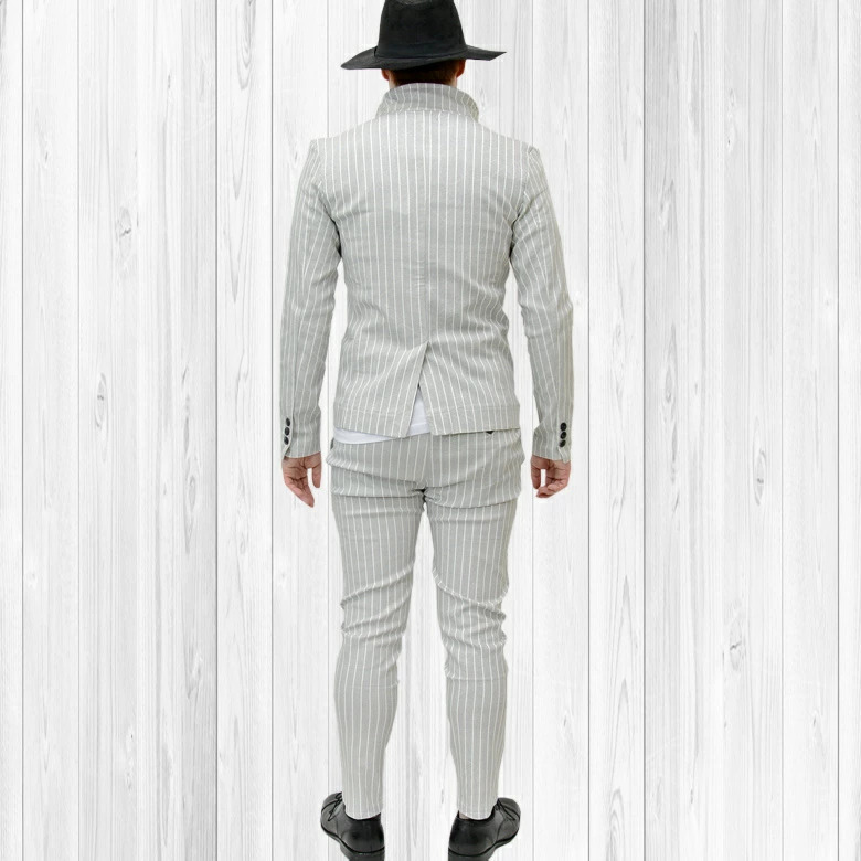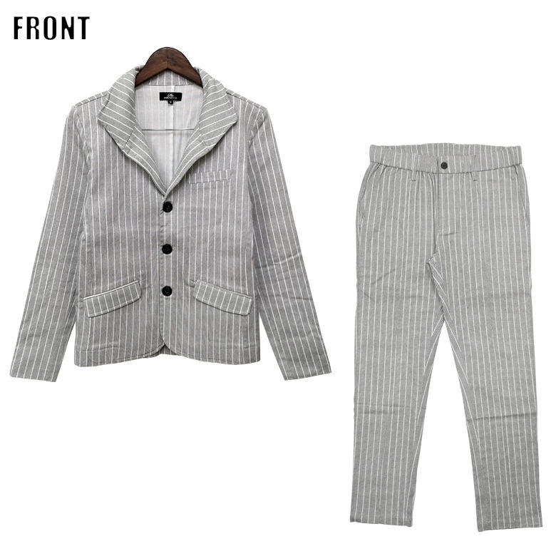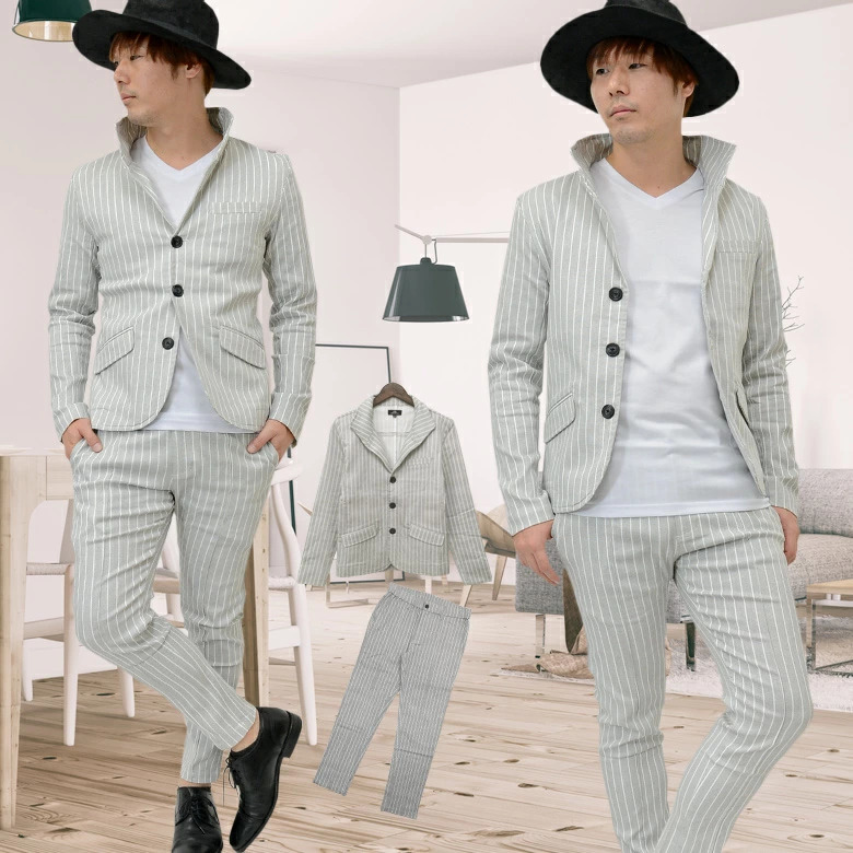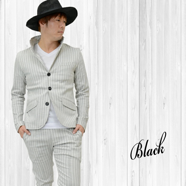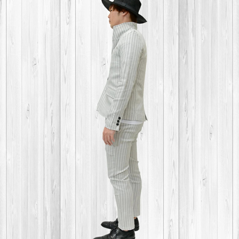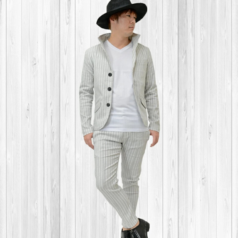 細かなドットを全体に施したストライプ柄のイタリアンカラージャケット&ストレッチイージースラックス。