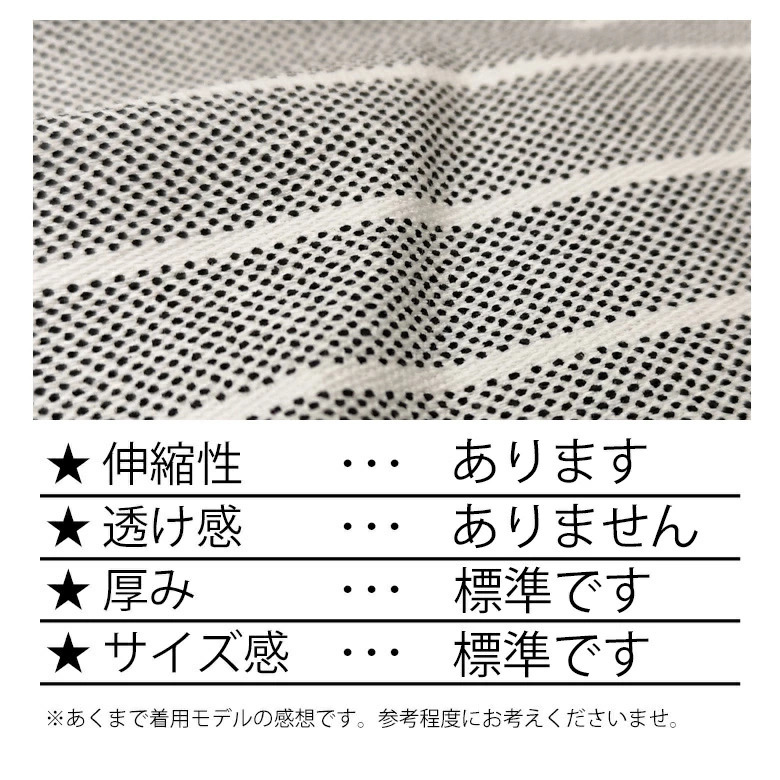 スタイルを引き締めるタイトめなサイズ感でも適度な伸縮性で動きやすくストレスなくご着用頂けます。