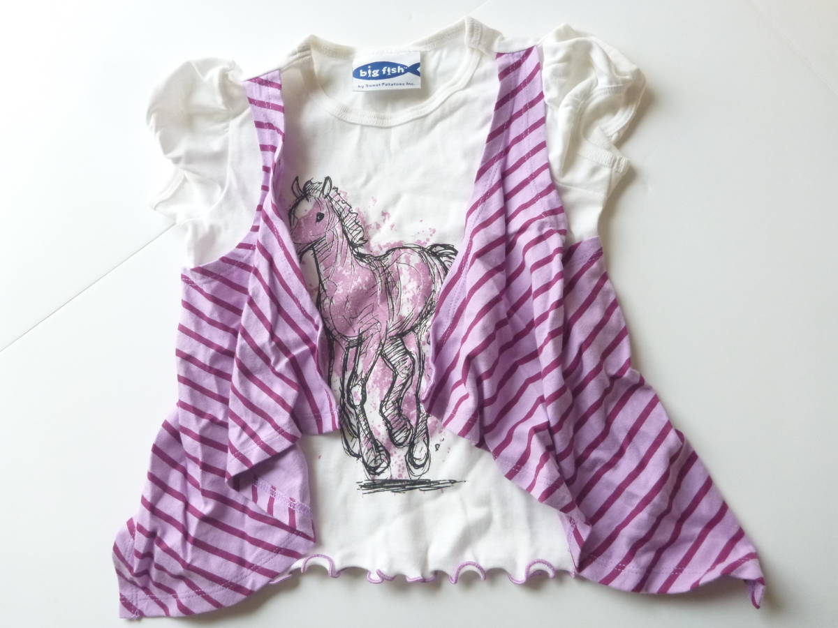 新品 bigfish★ラメプリント とっても可愛い 取り外し不可ベスト風 パプ袖 半袖カットソー 4 100相当
