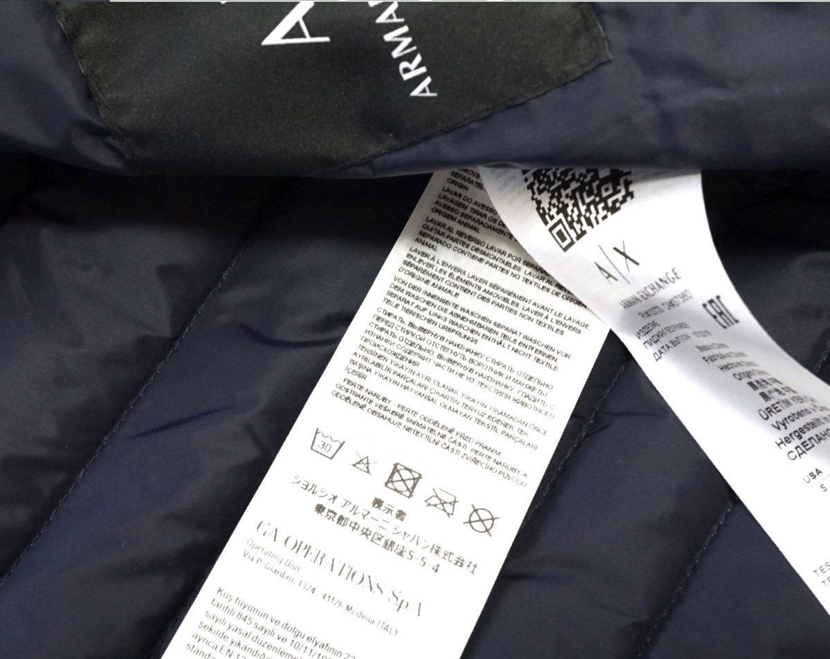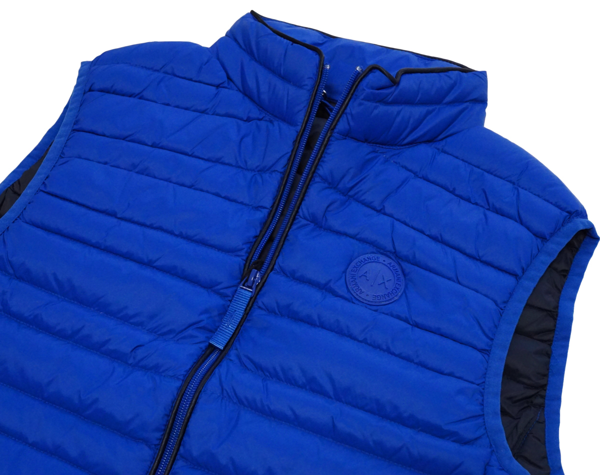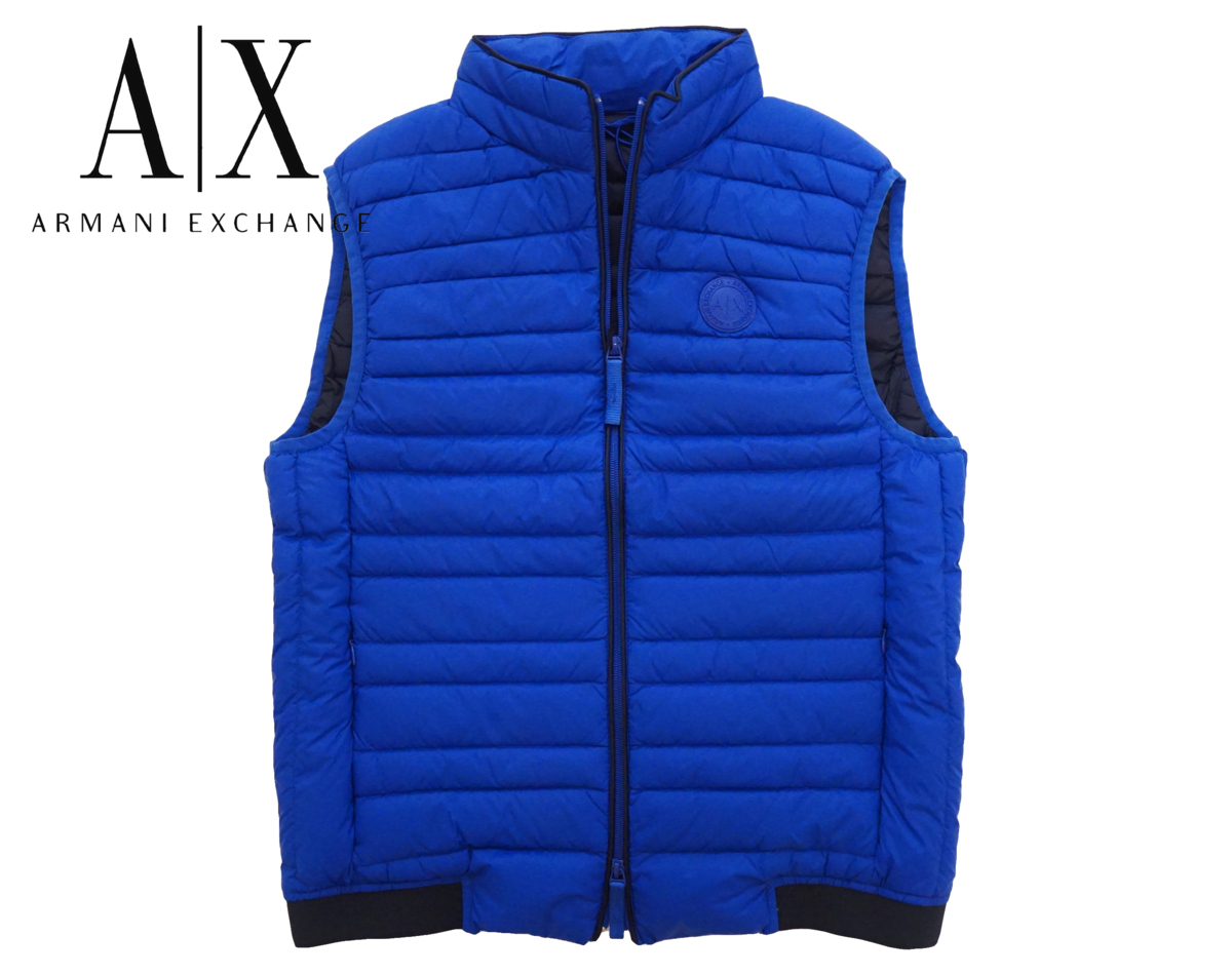 ◆新品◆アルマーニエクスチェンジ◆Tシャツ姿をお洒落にインナーダウンにロングシーズン活躍 ロゴデザイン ダウンベスト S 青 A|X ARMANI