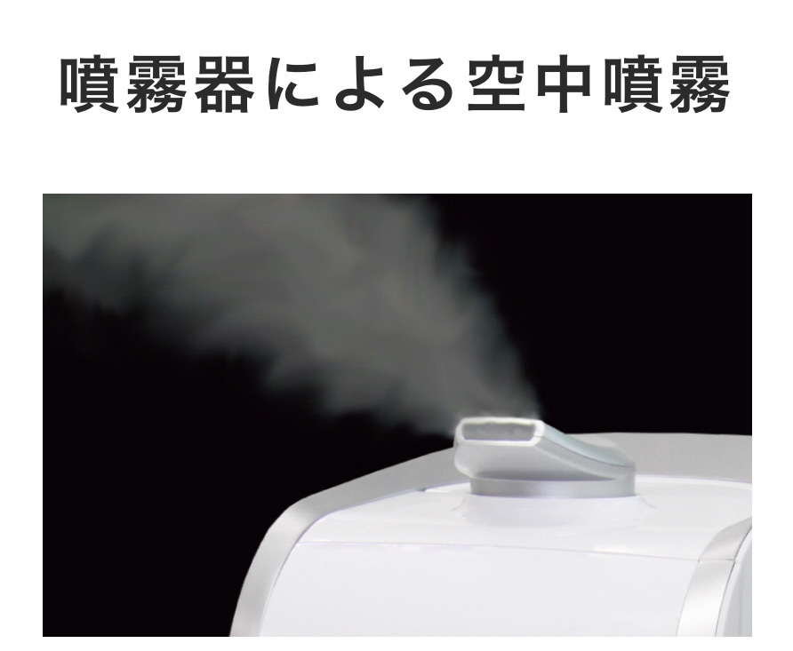 超音波式加湿器(噴霧器)にて空間噴霧がベストです。
