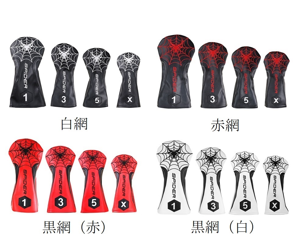 ゴルフヘッドカバー ドライバー用カバー ウッド用カバー ユーティリティ用 UT用カバー 4点セット Spider 刺 4色