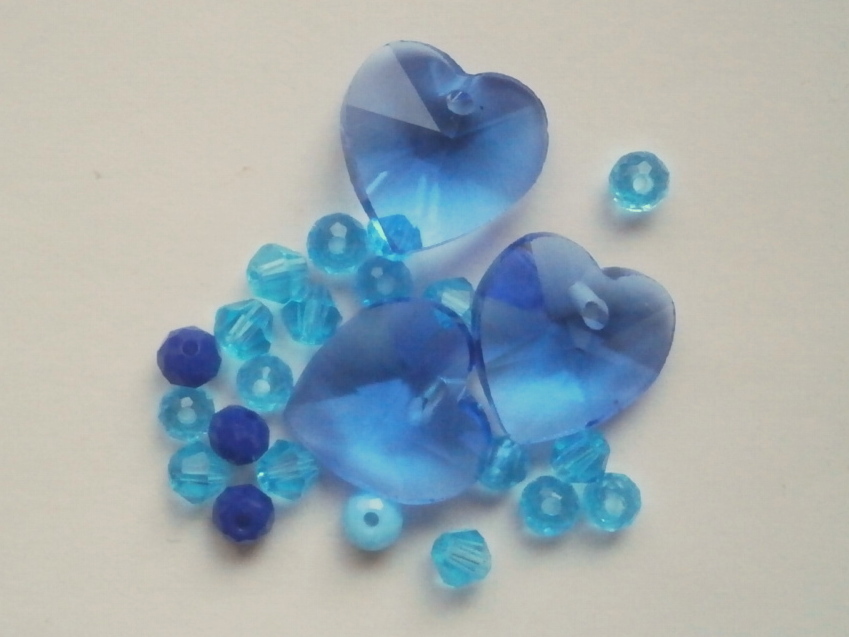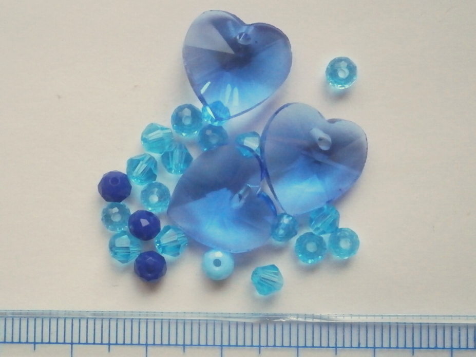 ガラスビーズ★ハート★1つ穴★ブルー系★c