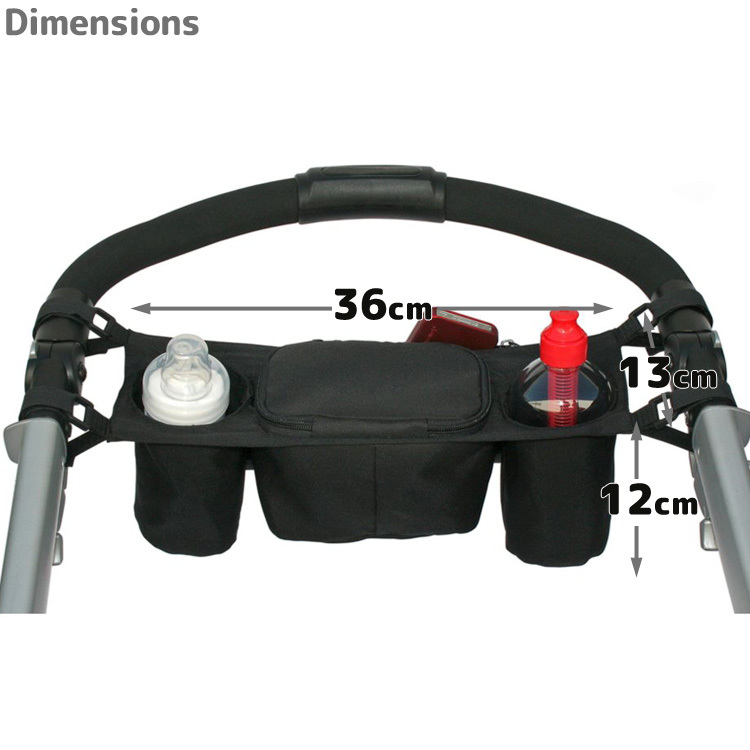 仕様 | ママのドリンクも、お子様の哺乳瓶もスッキリ収納出来て 大小ポケットには、チャックが付いているので用途に合わせて使えます。 バギーのハンドルに簡単取り付け! ベビーカーの持ち手部分が斜めでも水平でも固定ベルトの長さを調節出来るので、 ほとんどのベビーカーに取り付けが可能です。 |