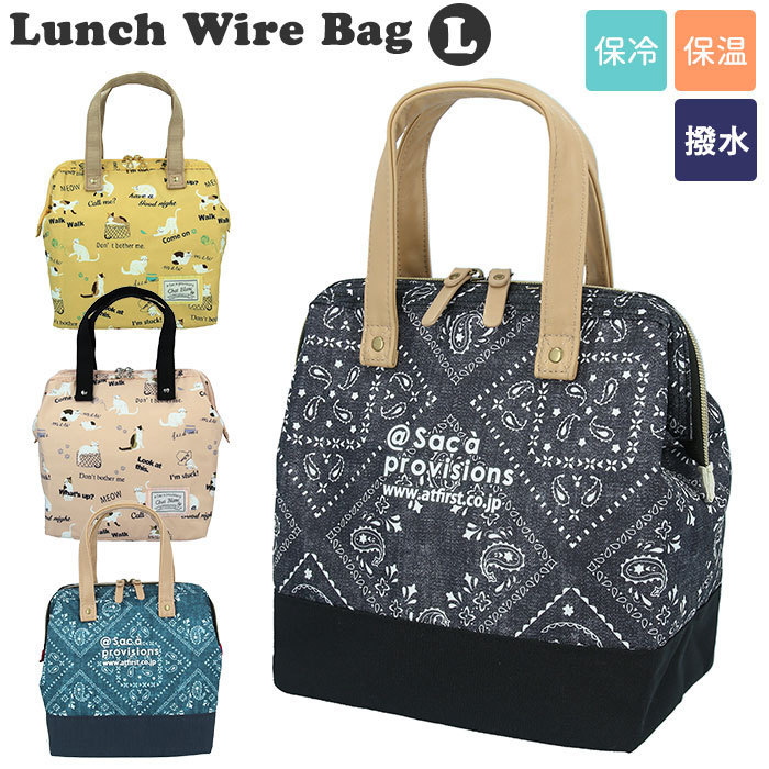 商品説明 | ・がま口タイプのおしゃれな保冷ランチバッグのランチワイヤーバッグLサイズ。 ・生地に撥水加工がされているので、多少の汚れも弾き、水に濡れても大丈夫。 ・内側は保冷保温効果の高いアルミ蒸着フィルムなので、ランチボックスの持ち運びが安心♪ ・内ポケットに保冷剤を入れるネットポケット付き。 ・開き口はワイヤーが入っていて、がま口型にガバっと開くので、お弁当が取り出しやすくて便利。 ・500mlのペットボトルを立てて入れる事ができるゴムバンド付きなのもうれしいポイント。 ・ランチバッグに見えないオシャレなバッグでランチタイムも気分がウキウキ♪ |