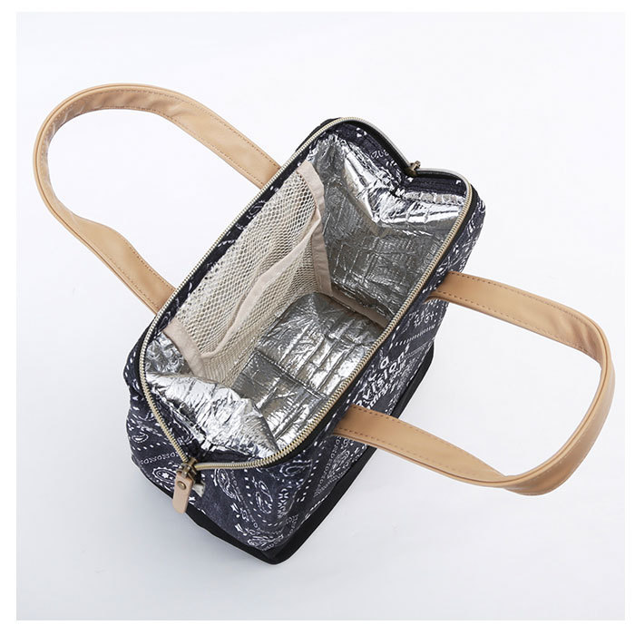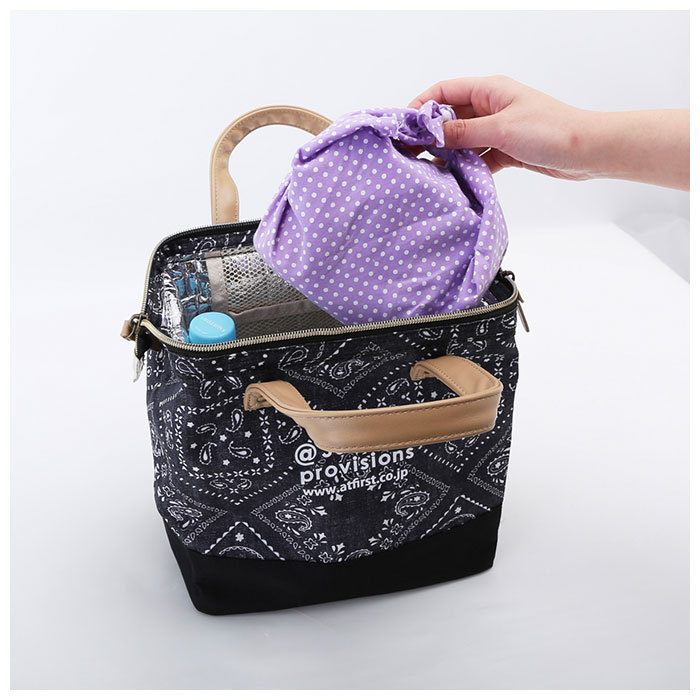 注意点 | ※持ち手を強く引っ張ったり、重たい物を詰め込み過ぎて使用すると破損する恐れがあります。ご注意ください。 ※内側に保冷・保温効果を保つための材質を使用しておりますが、あくまでも簡易的なものなので冷やす効果はありません。要冷蔵の食べ物や飲み物等を長時間入れたままにしないでください。 ※外気温により保冷効果は異なります。 ※この製品は、防水加工商品ではありません。凍らせたものを入れると結露した水が縫製部分より外側に染み出すことがあります。 ※濡れた際は十分に拭き取り、直射日光を避けた風通しのよい場所で乾燥させてください。 ※汚れた場合は固く絞った柔らかい布などで優しく拭いてください。 ※火気には近づけないでください。 ※お洗濯はお避けください。 ※カメラやモニターの性質により、画像と実物の色の違いがある場合がございますのでご理解願います。 |