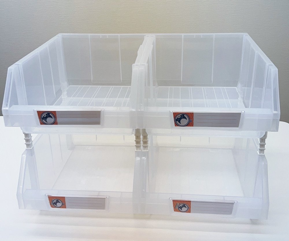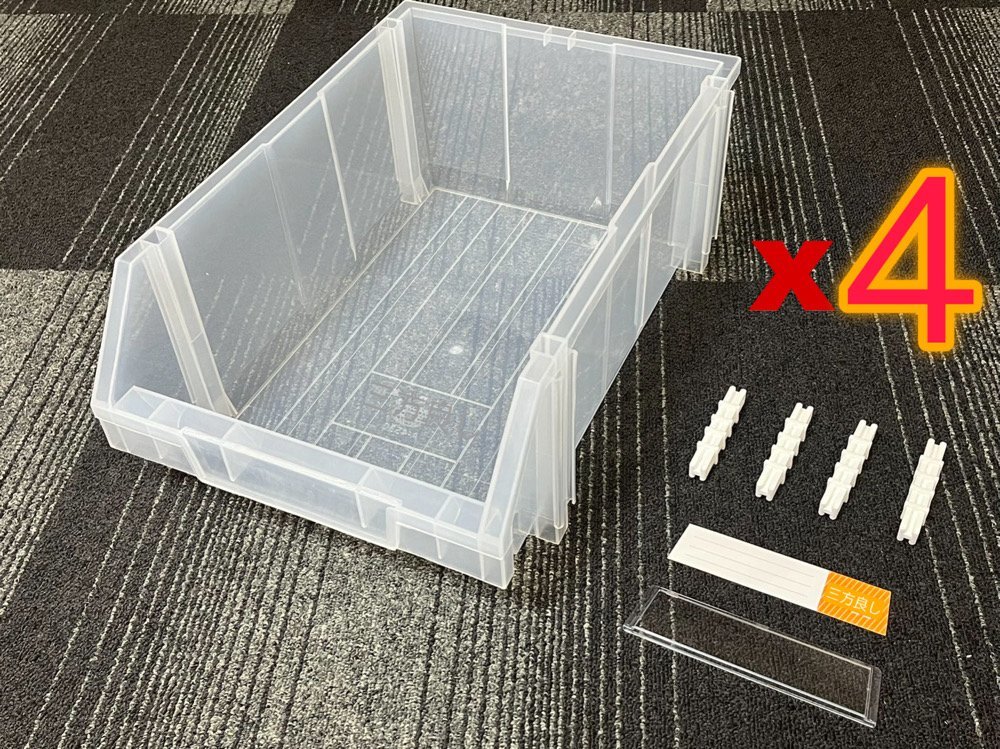 【三方良し】連結パーツボックス クリア色 4個セット 名札付 部品収納ケース 収納ボックス LLサイズ パーツボックス 収納 コンテナ ボッ