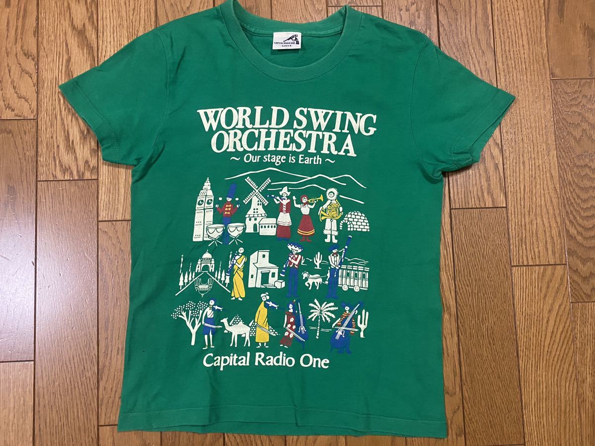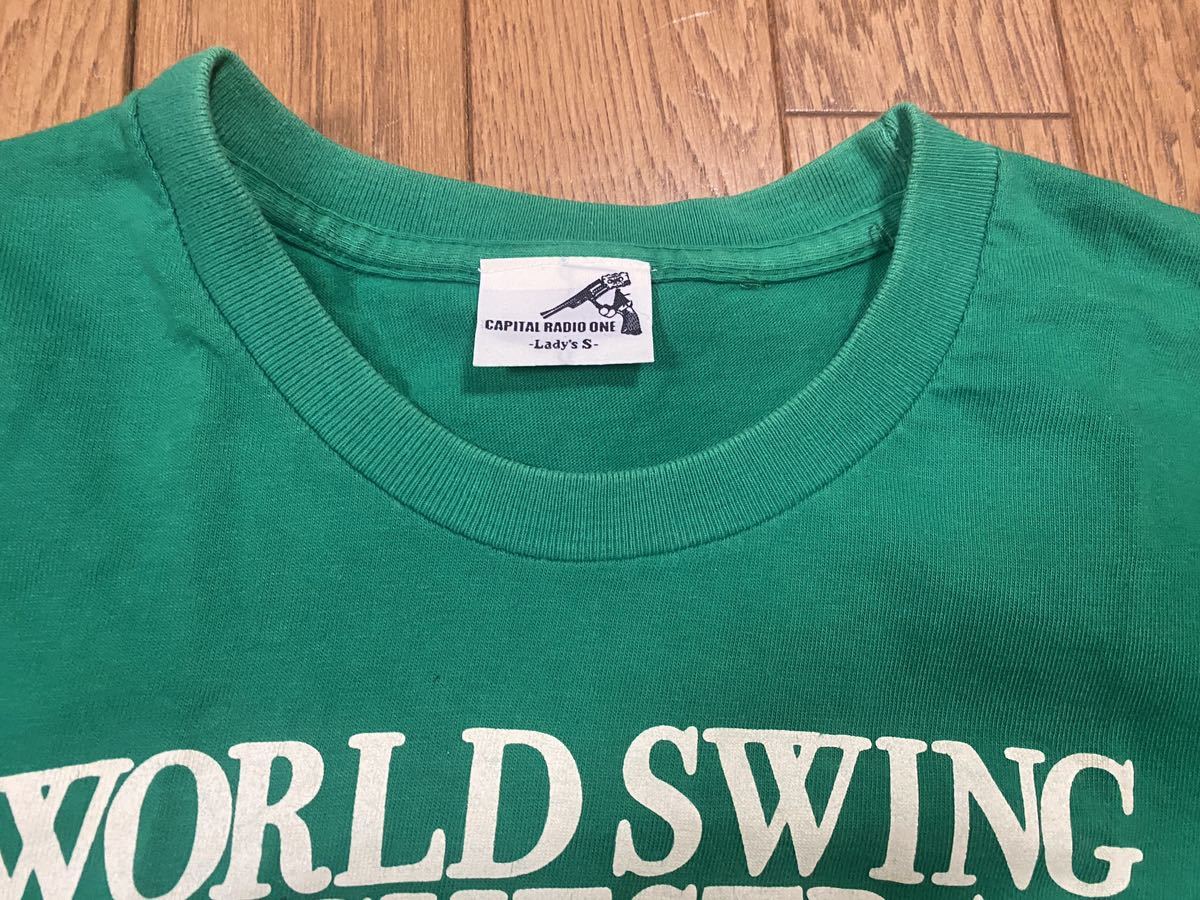 CAPITAL RADIO ONE■Tシャツ■レディースS(肩幅36着丈52)■グリーン■状態良好■本来大人のレディースSですが、サイズ的にもキッズにオススメですのでここに掲載しました■ご入札の際は自己紹介欄もご覧ください