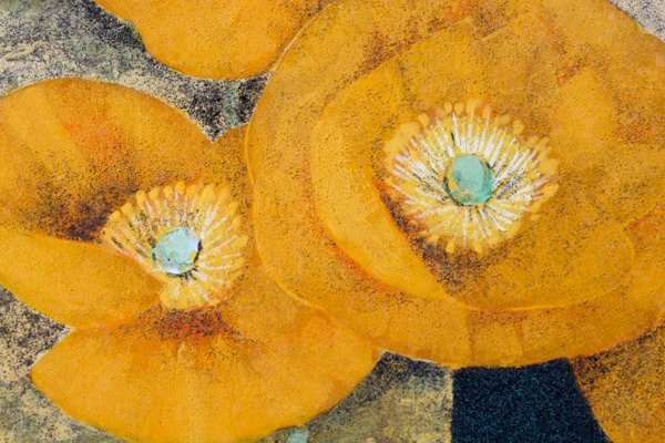 石川義 ポピー 黄色い花 日本画 8号 落款 静物画 になります。