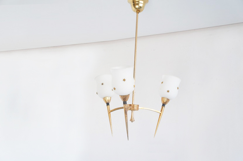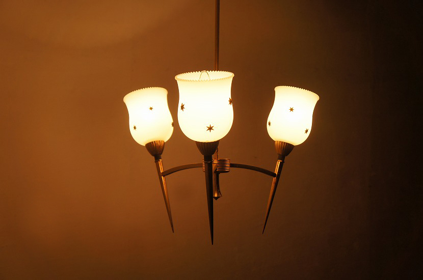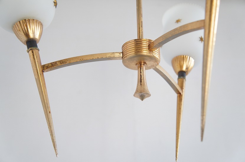 SALE!フレンチミッドセンチュリー スターバースト ヴィンテージ 3灯シャンデリア/スティルノボ/1950年代/モダニズム/幾何学/スプートニク