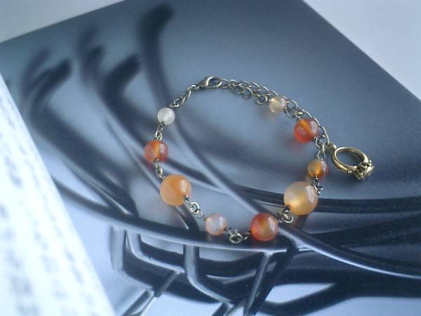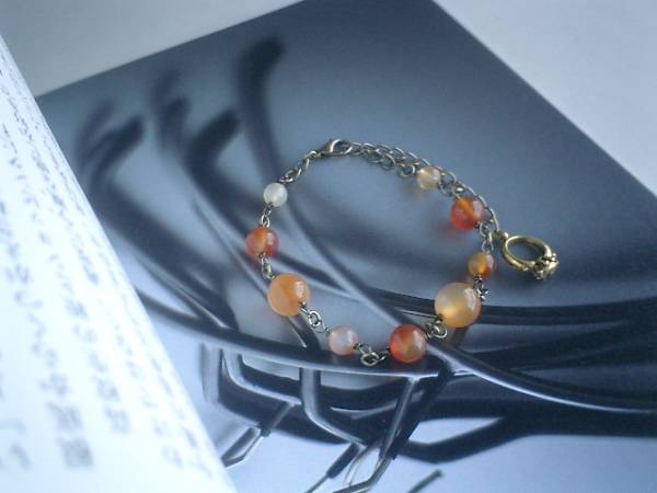 やさしい色を+して・・シリーズです♪オリエンタル気分・・シックなカーネリアンのブレスレットです♪大きさ違いの丸玉のカーネリアンを合わせて大人のロマンチックしています♪6ミリ、8ミリ、10ミリの丸玉のカーネリアンはランダムに繋いでマニッシュな表情です♪長さは全長23センチ位で調節自由です♪お揃いのネックレスも出品しています♪シンプルで長く着けて頂けるデザインを考えて作りました♪♪ハンドメイドをご理解頂いてノークレーム、ノーリターンでお願いします