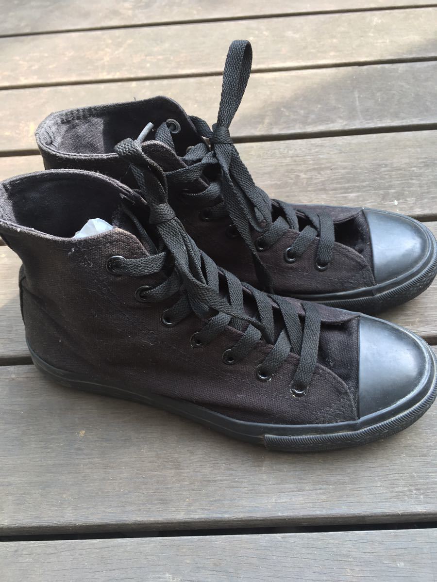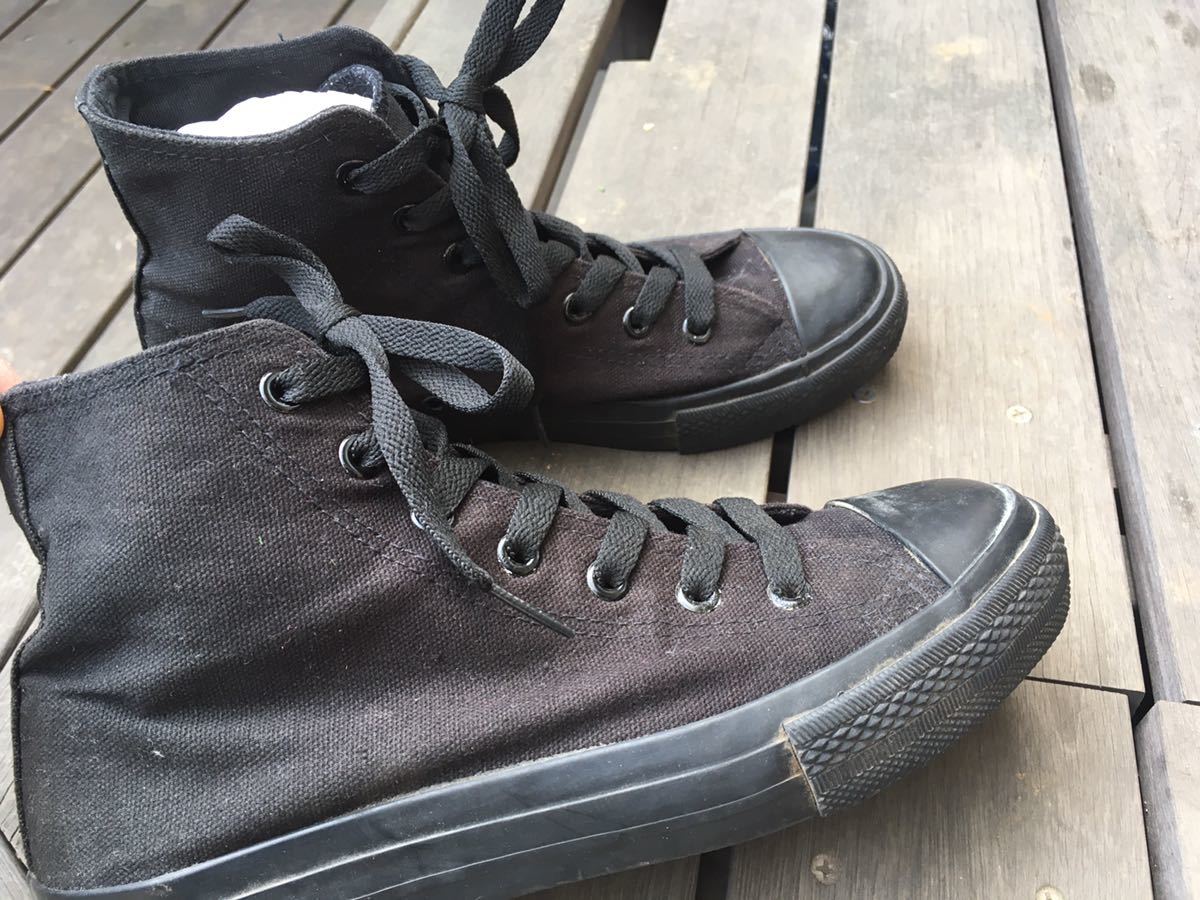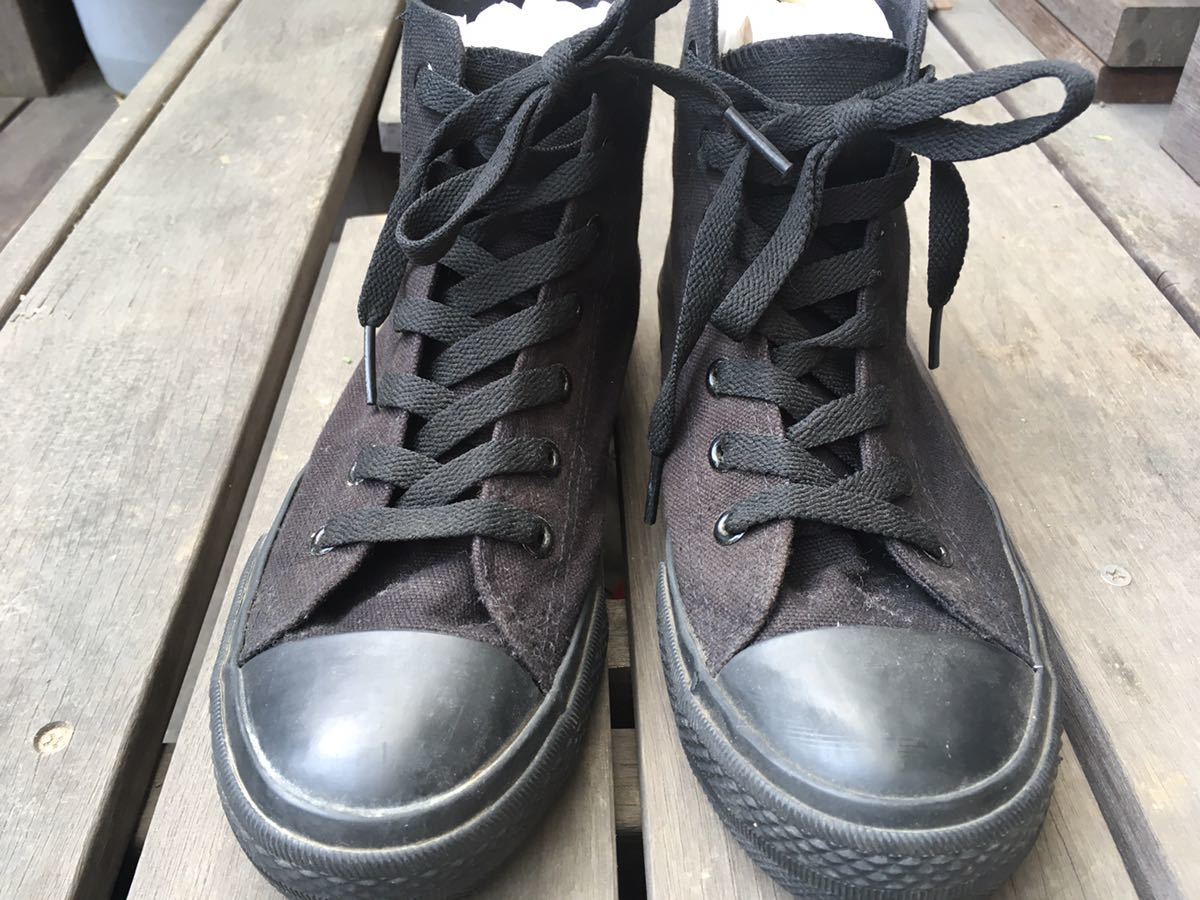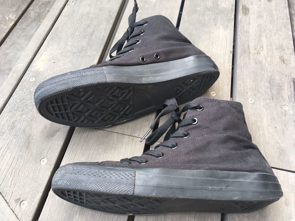 ★送料無料!黒のスニーカー★ハイカット★ガーリー★ワンピース★23.0★シンプル★ぺたんこ楽チン③