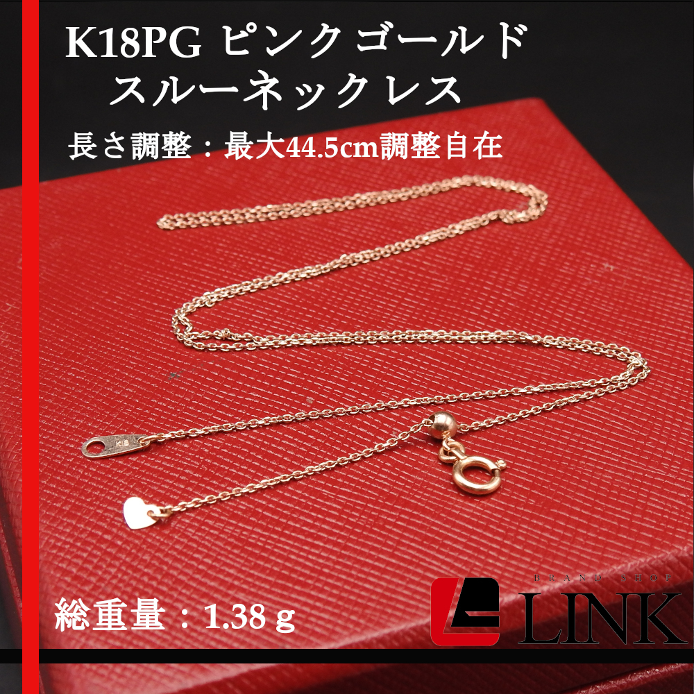 【美品】ピンクゴールド K18PG スルーネックレス レディース アクセサリー スライド調整 長さ調整:最大44.5cm調整自在