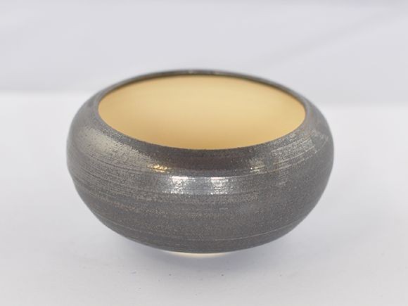 黒丸和鉢に金彩色の輝きがあり、高級感があります。 黒丸和鉢 金彩 宗蔵作 【盆栽鉢】【4号】【信楽焼】 幅11.5cm×高さ6.5cm黒の丸い鉢に上品な金彩色の輝きがあり高級感があります。当店では枝ぶりの良い特選長寿梅などに使用しております。