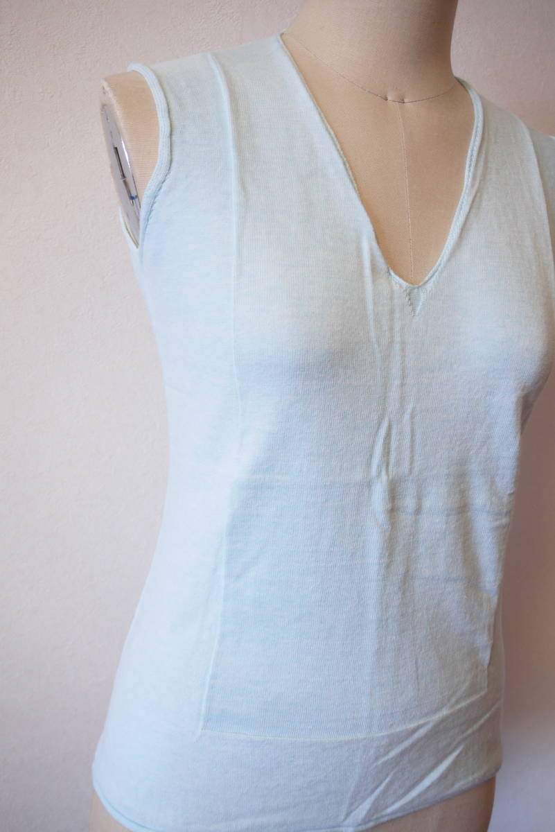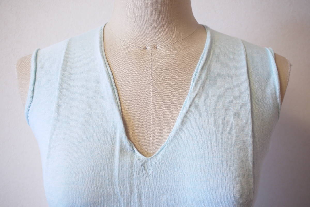 SAMAND'OR サマンドール Vネックノースリーブニット ブルー 9 美品