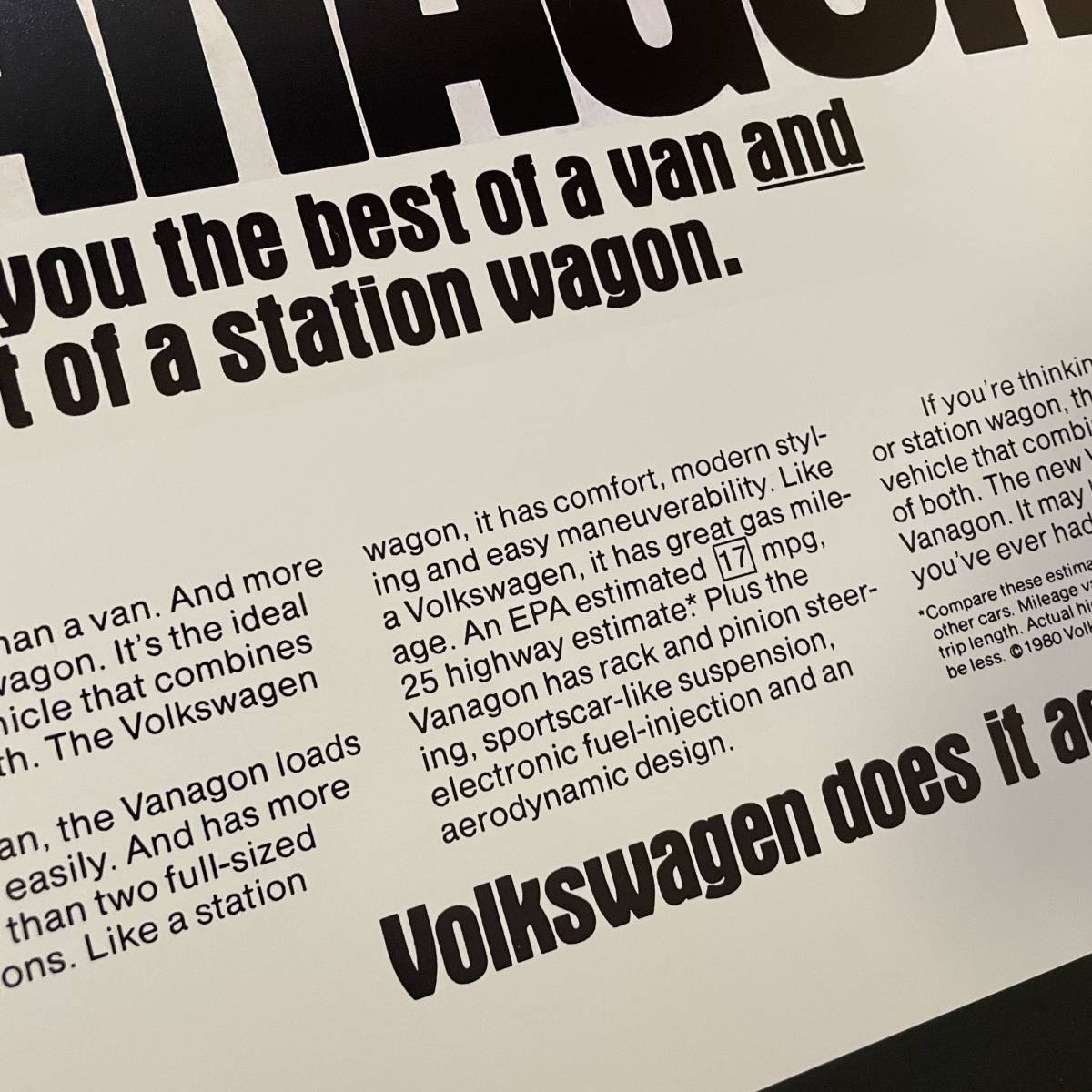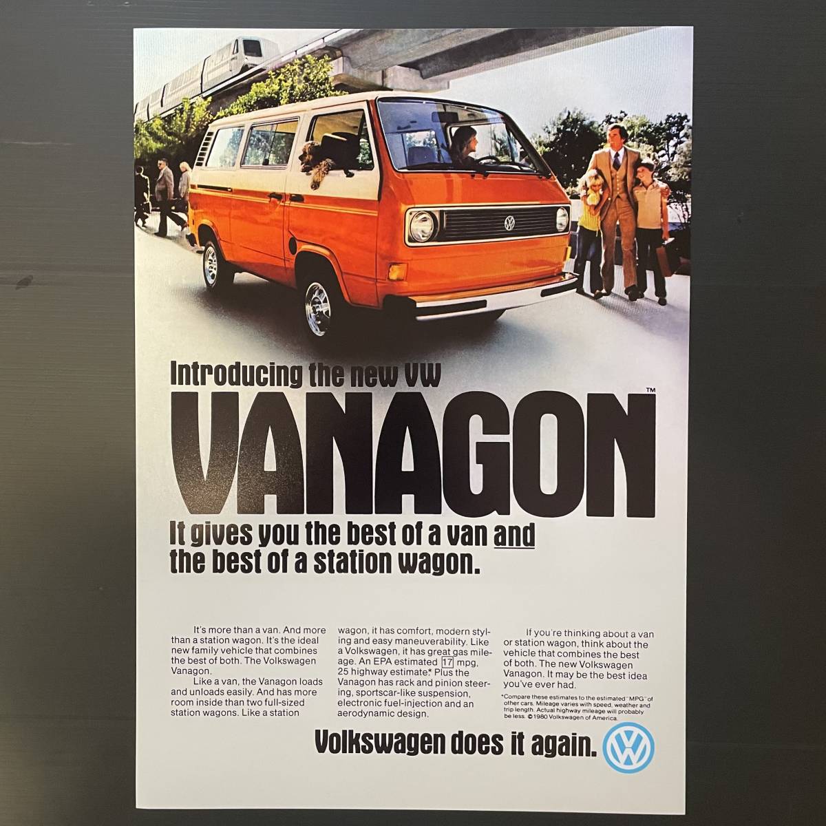 | 1980 Volkswagen Vanagon USA 限定数量 1980年VW バナゴンの広告をアレンジしたリプロダクションポスターです。(ビンテージものではありません) ポスターサイズ:42cm × 29.7cm (ポスターのみの出品で額は付属しません。額はA3サイズ用がピッタリです) こちらのポスターは高品質で厚みのあるアートペーパーにプリントされた非常にクオリティの高いポスターです。カラーコピーやクラフト紙や布にプリントされたような画質の粗いポスターではありません。また、存在感があり、しかも飾るのにも困らない絶妙なサイズですので、お好みのフレームに入れディスプレイするのに最適です。またしっかりとした厚みのあるポスターですので、そのまま無造作に壁などにピンでとめるディスプレイのスタイルもおススメです。趣味の部屋・ガレージ・カフェ・ショップ・Bar・オフィスなどに! ※60's・70's・80'sを中心にマニアックな映画・旧車・バイク・音楽バンド関連などの様々なポスターを多数出品中ですのでチェックしてみてください! Click→映画関係ポスター Click→音楽関係ポスター Click→自動車関連ポスターA Click→自動車関連ポスターB Click→オートバイ関連ポスター Click→その他ポスター | ||