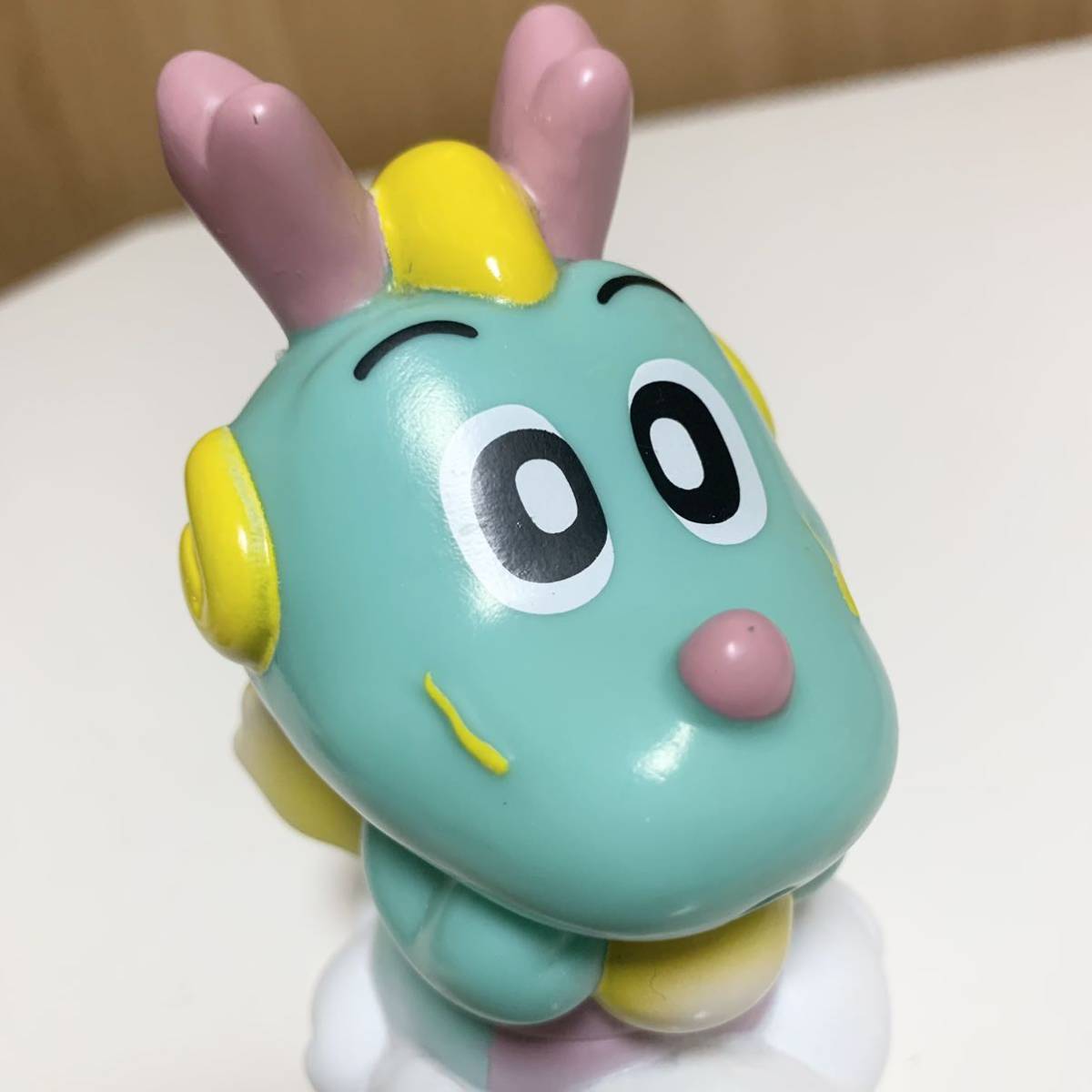 プラスチック製で、ラグビーボールを持った緑色の龍と、雲の上に乗ったミントグリーンのファンシーな龍デザイン。