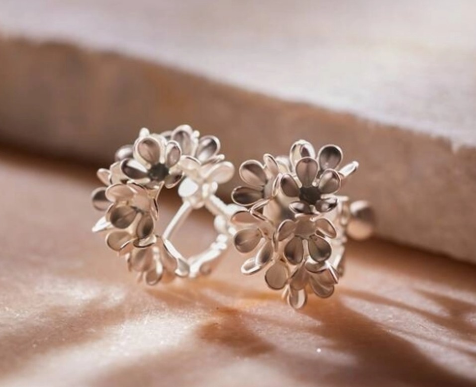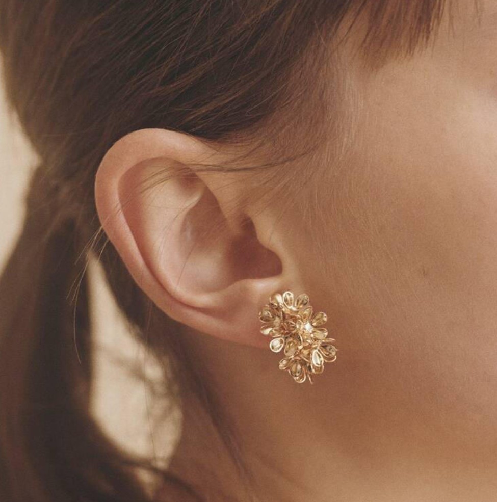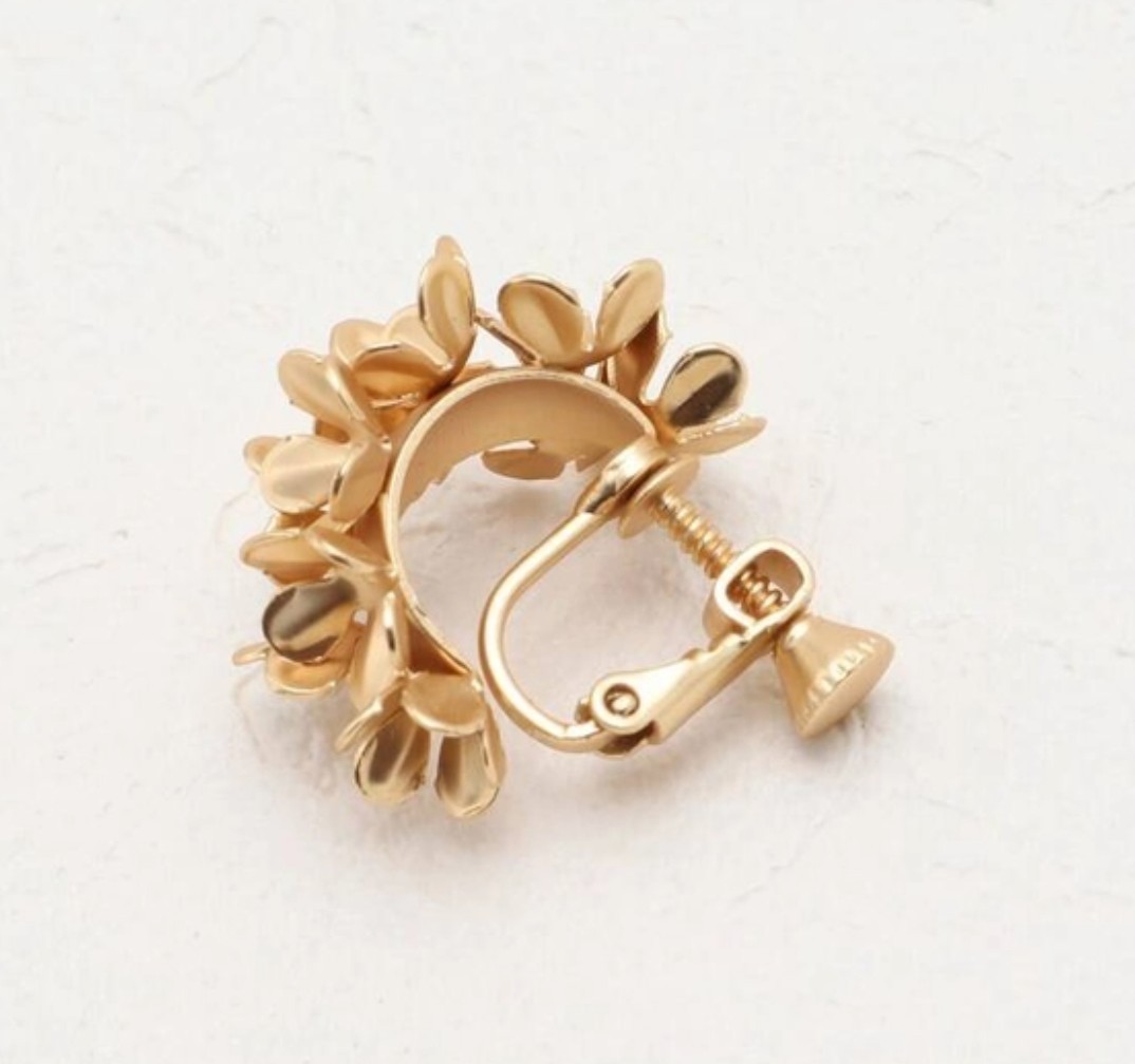 ヴィンティージ感のあるのメッキ加工が施されたフラワーイヤリング。