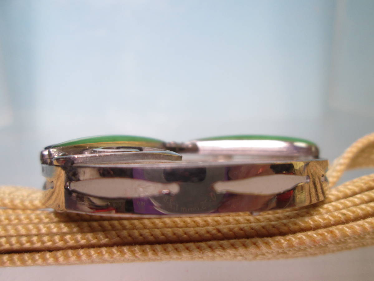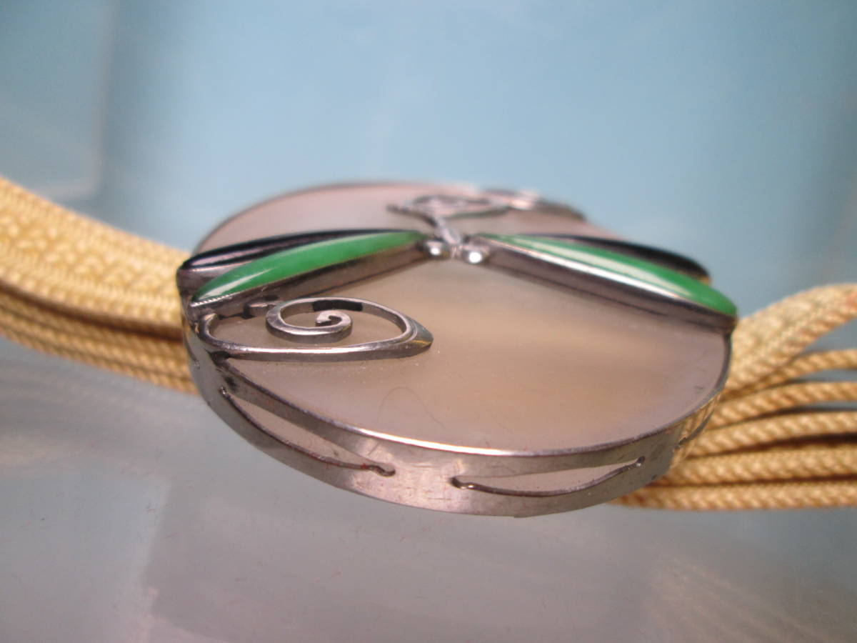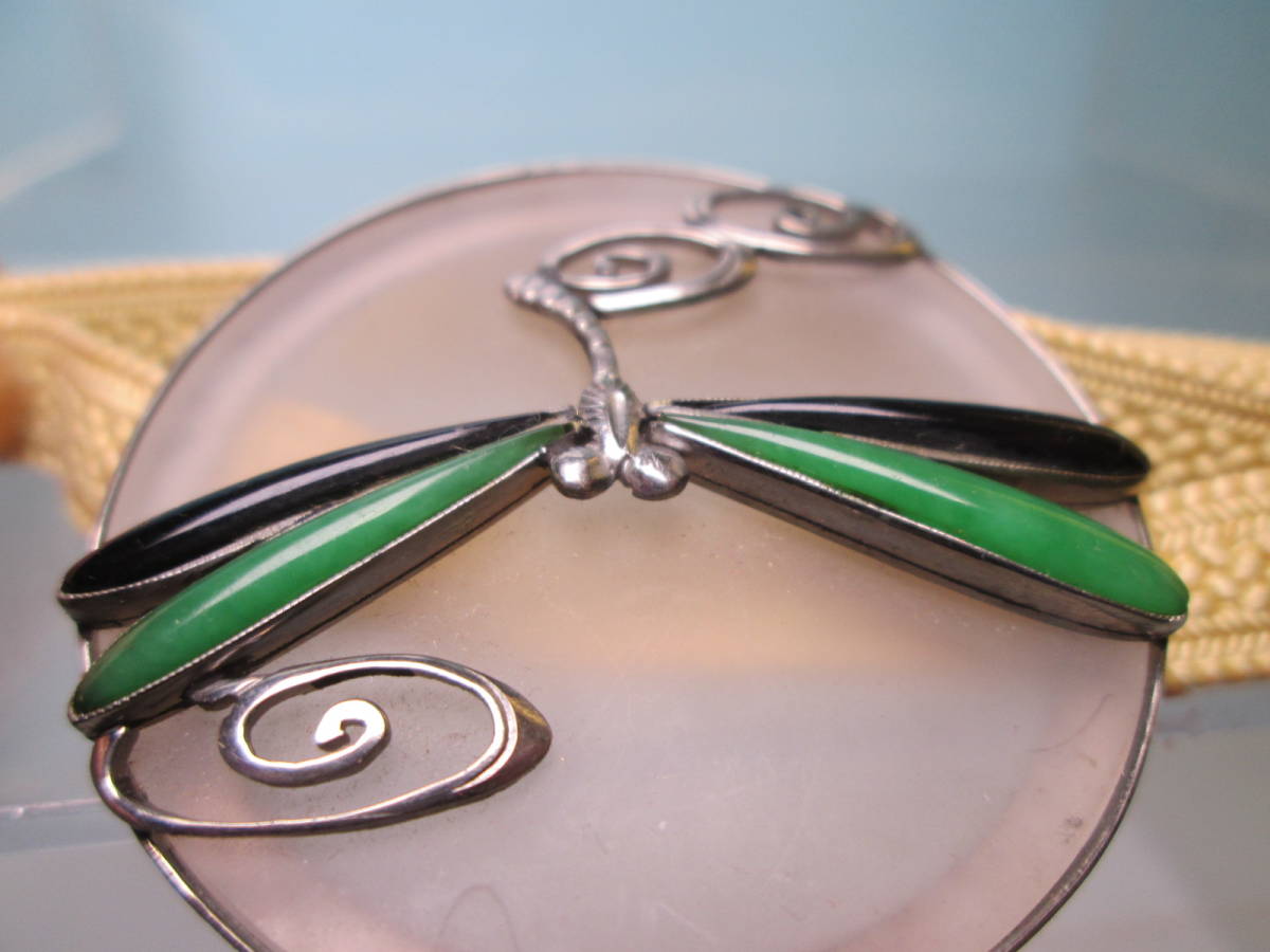 蜻蛉のグリーンは本翡翠のようです。黒い部分は素材不明です。