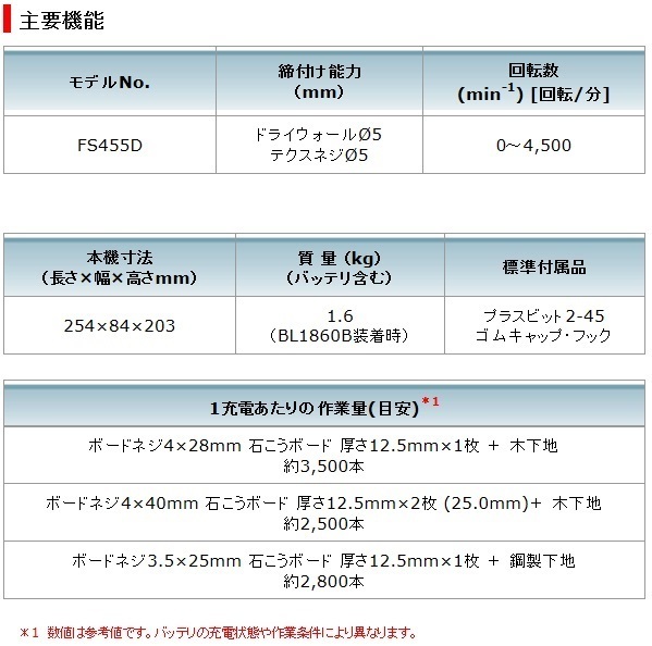 ■締付け能力(mm):ドライウォールφ5/テクスネジφ5