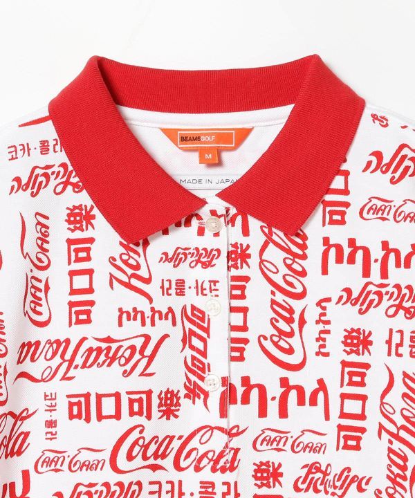 レア 新品 S ビームス ゴルフ BEAMS GOLF 別注 COCA-COLA 総柄 ポロシャツ スポーツ アウトドア 半袖 ポロ シャツ コーラ 赤 ストレッチ 37